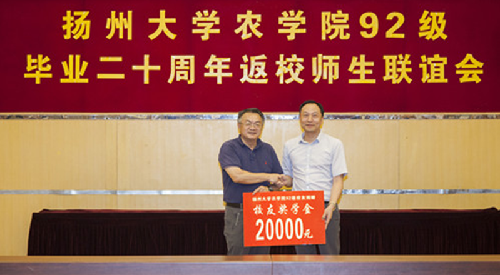 在座谈会上,焦新安校长向校友们介绍了扬州大学在学科建设、人才培养、校友合作等方面的近几年取得的成就,让校友们都为母校自豪。焦校长对校友们长期对学校的支持表示感谢,对校友们取得的成绩表示祝贺,并希望校友们持续关心支持扬大事业,促进融合发展,为早日建成国际有影响的综合性大学而共同努力。农学院 党委书记郭文善介绍学院近几年快速发展所取得的成绩,希望校友们常回家看看,加强合作交流,共赢农学院的美好未来。校友代表回顾30年来各自成长过程,深 切感恩母校、母院的培育之情。农学院一些老领导和老师也寄语校友们,祝校友们家庭、身体、政治健康。在座谈会上,农学86届校友捐赠了3万元作为“校友奖学金”给学院奖励优秀学子。