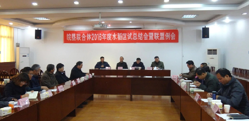 根据前期各成员单位推荐,会议推举皖垦种业徐成银研究员为联合体理事长,选举产 生了联合体秘书长、专家组组长。会议总结了2016年试验结果,筛选推荐继续参试的品系,制定了2017年联合体试验方案,修订了联合体(联盟)章程。最后,徐成银理事长特别做了“树立品牌、提高试验质量、维护联合体声誉、确保联合体健康可持续发展”的报告。