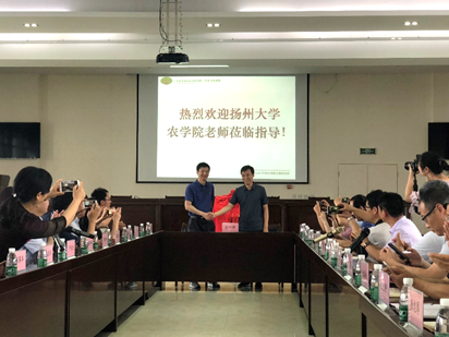 6 月30日,由我室严长杰教授带队,全体成员到徐州市农业科学院开展了学术交流,在农科院杨峰副院长的带领下考察了农科院国家水稻产业技术体系试验示范基地。随后,双方单位共50余位成员进一步就科研合作、人才培养等议题开展了深入交流,严长杰教授与徐州农科院刘明钟院长代表双方签署了人才培养合作协议,并共同为“扬州大学农学院大学生实践教育中心”揭牌。