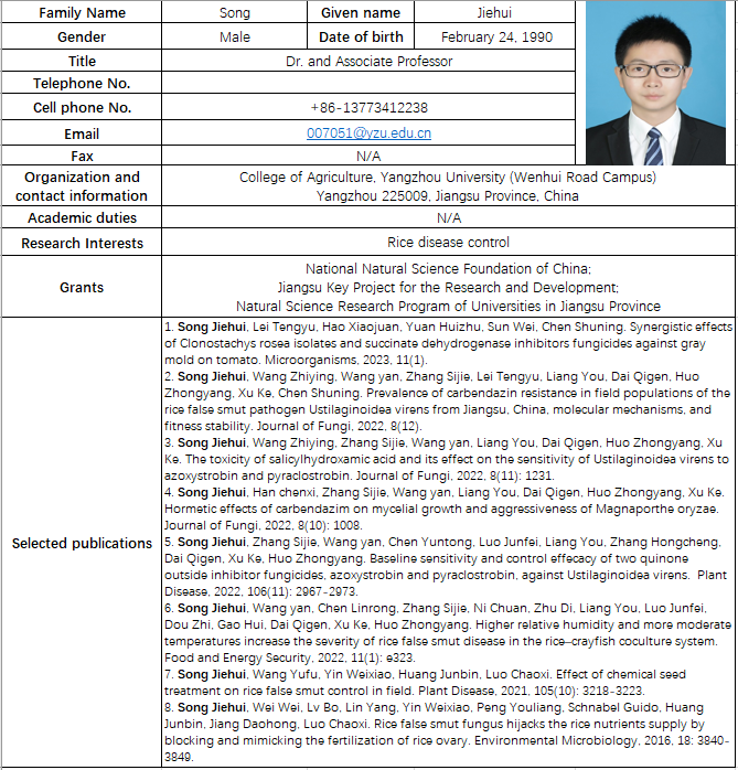 Telephone: 0514-87979226 / 87979212 / 87979351 Fax: 0514-87996817 Email: nxy@yzu.edu.cn