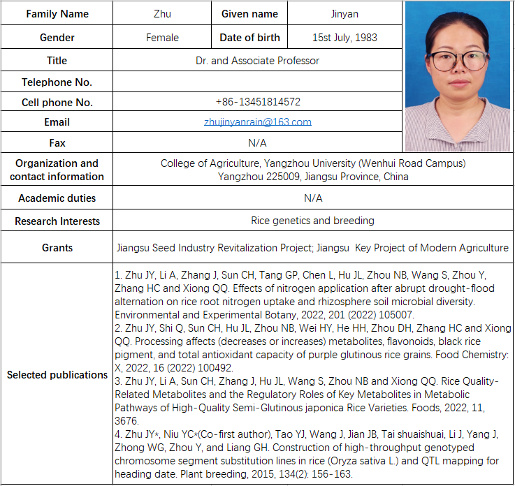 Telephone: 0514-87979226 / 87979212 / 87979351 Fax: 0514-87996817 Email: nxy@yzu.edu.cn