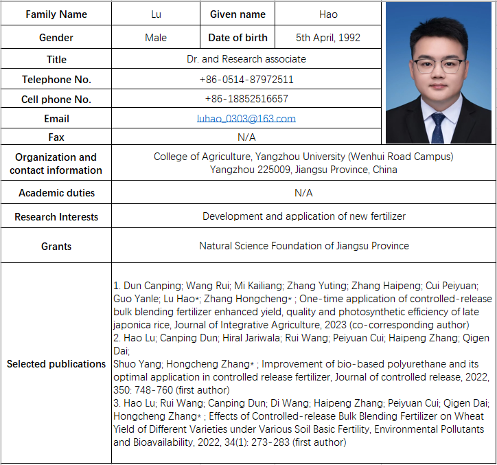 Telephone: 0514-87979226 / 87979212 / 87979351 Fax: 0514-87996817 Email: nxy@yzu.edu.cn