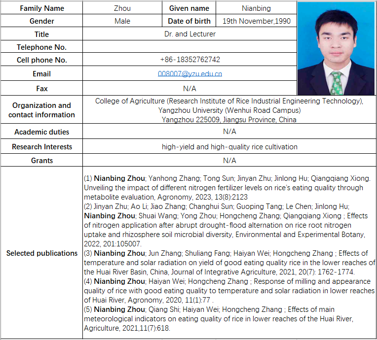 Telephone: 0514-87979226 / 87979212 / 87979351 Fax: 0514-87996817 Email: nxy@yzu.edu.cn