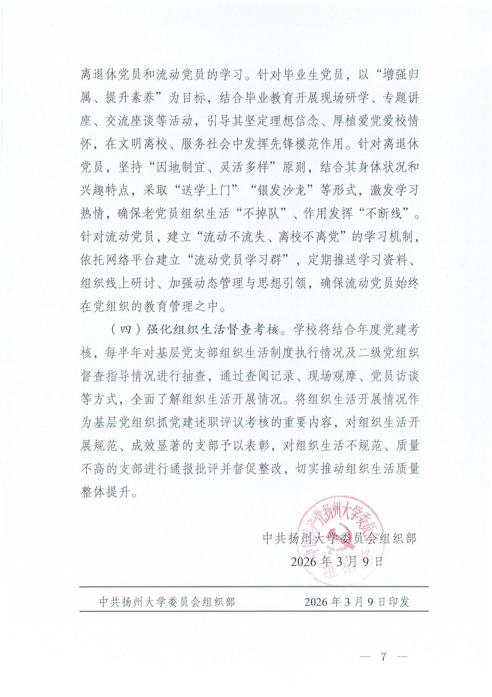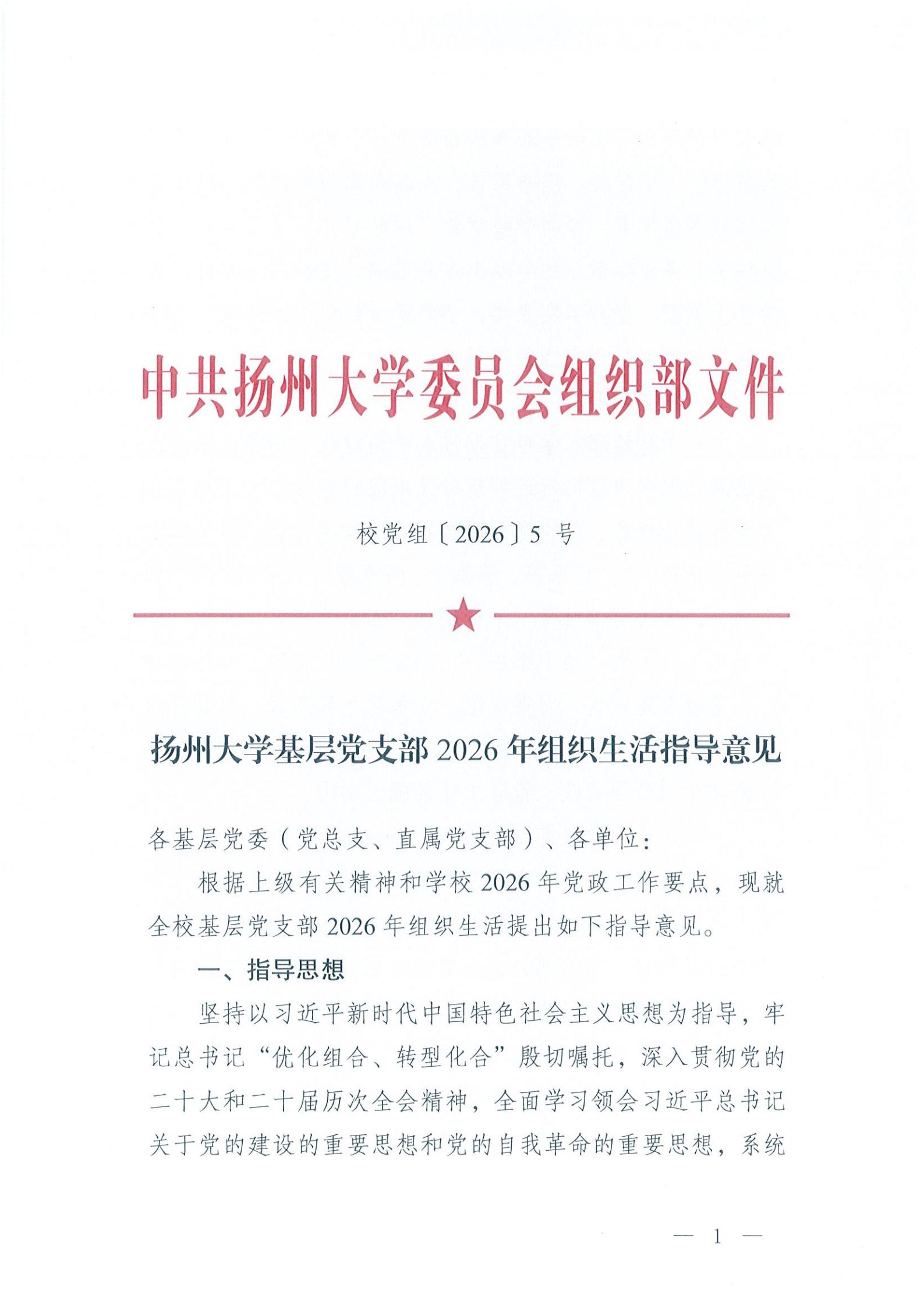 扬州大学基层党支部2026年组织生活指导意见