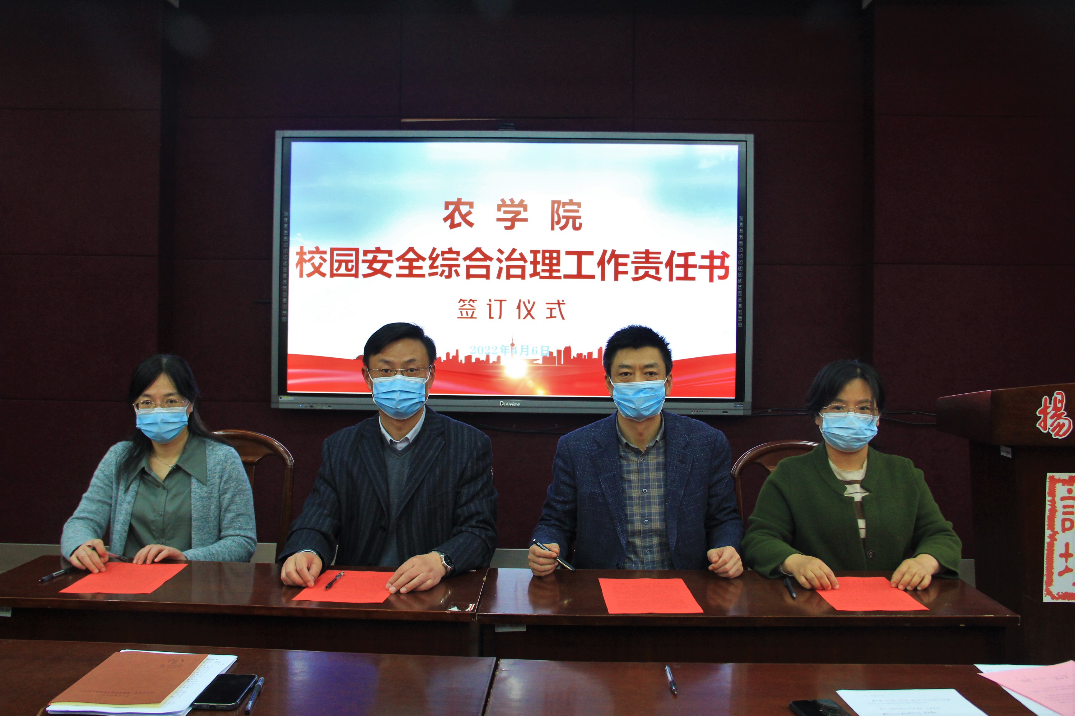 4月6日,学院召开全面从严治党、校园安全综合治理工作会议并签订责任书。会议由院长严长杰主持,学院领导班子成员、党支部书记等20余人参加。