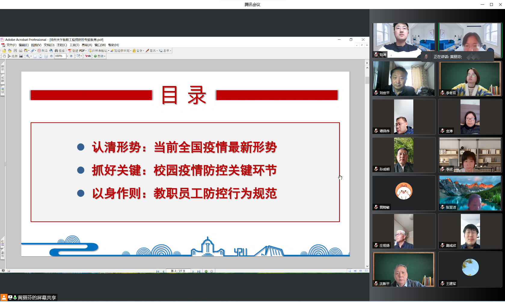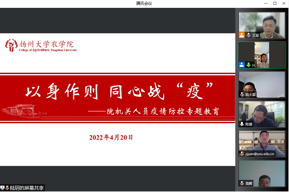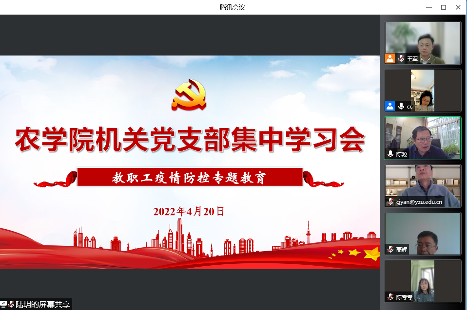 4月20日,学院以系科为单位,组织教职工线上开展“以身作则,同心战“疫””专题教育活动。
