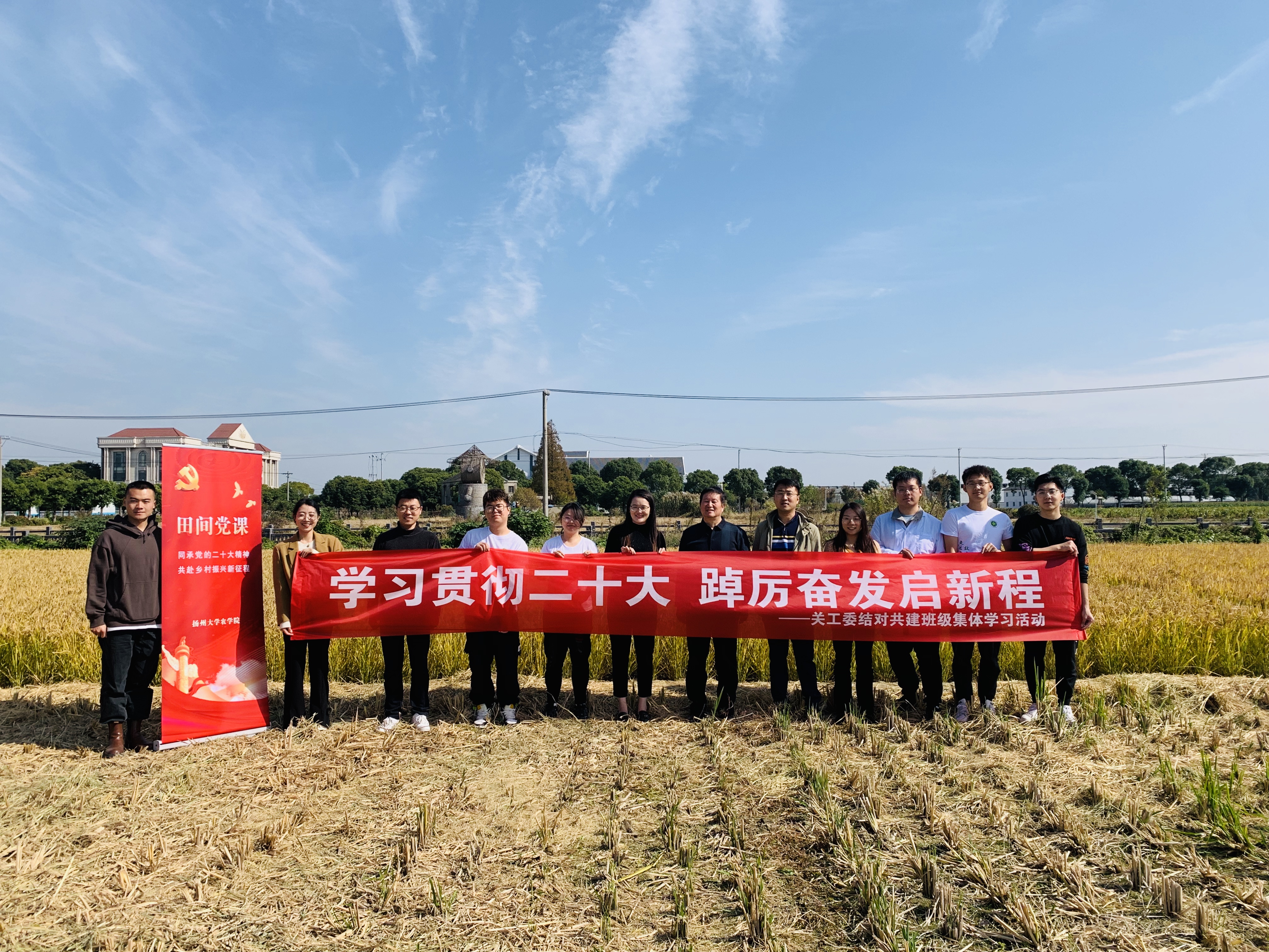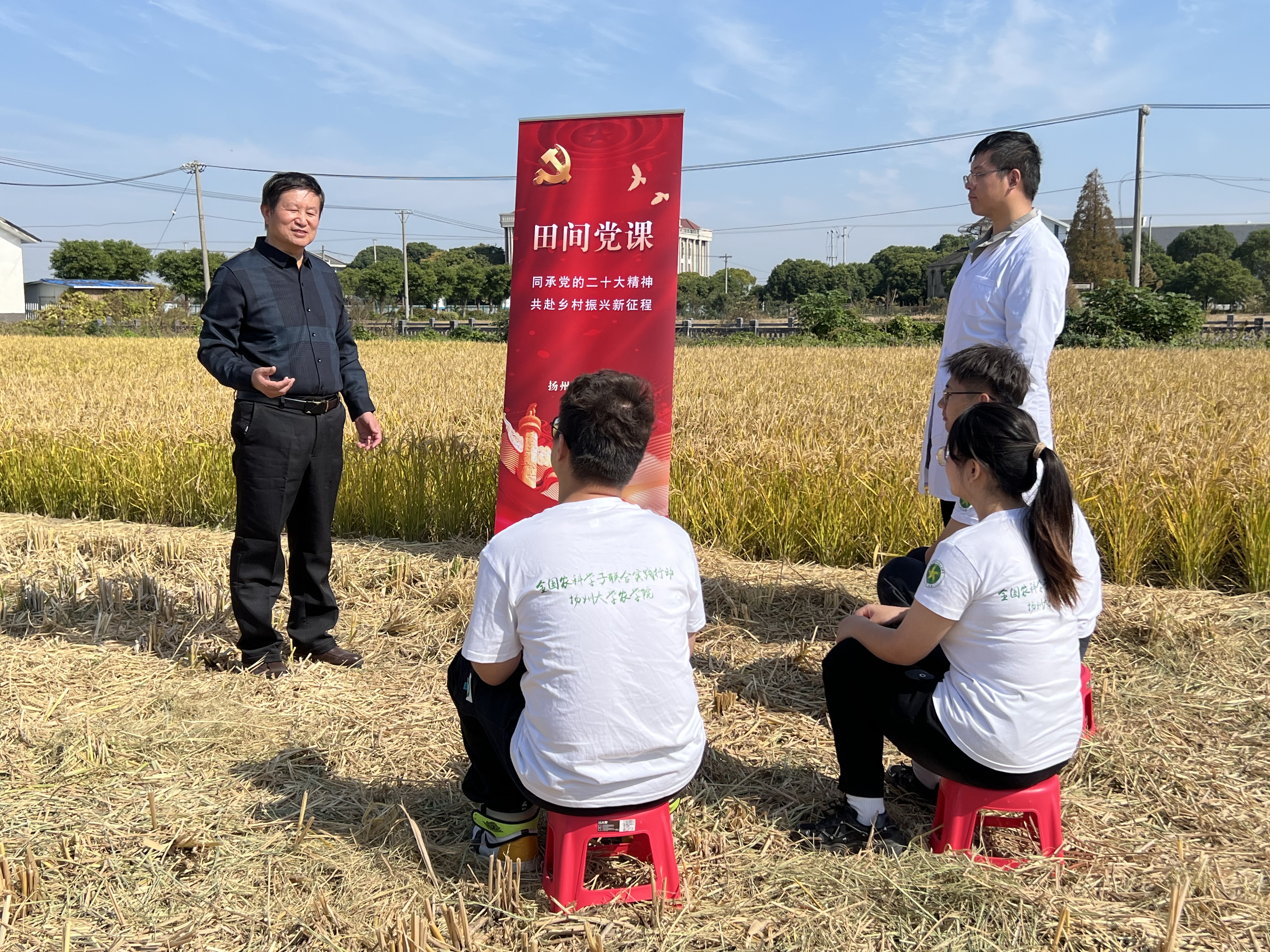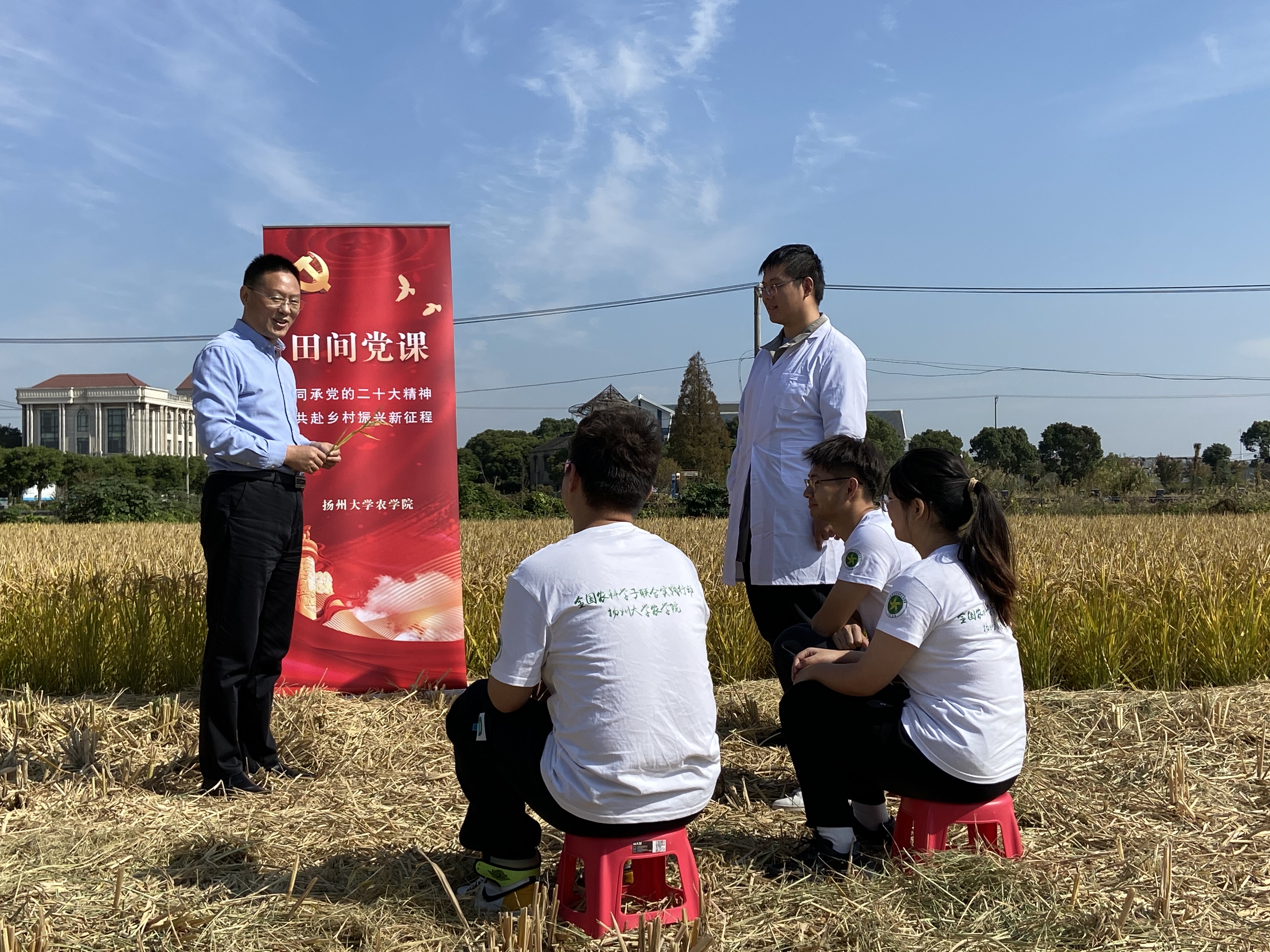 11月6日,为学习贯彻党的二十大精神,学院学生党支部在江苏省常熟市常熟国家农业科技园区开展“田间党课”主题党日活动。学院党委书记、关工委名誉主任周保垒老师、学院党委副书记、关工委主任周立云老师、学院关工委副主任黄勤老师分别在田间授课领学党的二十大报告。
