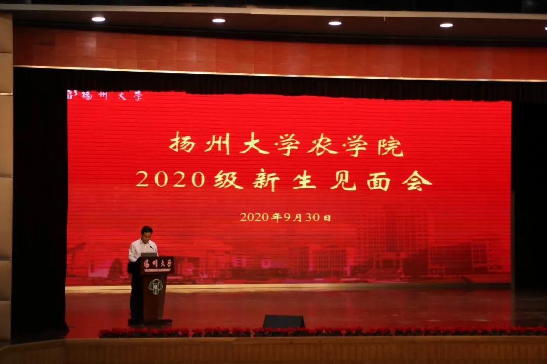 9月30日下午,我院2020级新生见面会在荷花池校区大学生活动中心小剧场隆重举行。院长严长杰,院党委常务副书记王军,副院长陈源,院党委委员、水稻产业工程技术研究院常务副院长高辉,副院长陆大雷,学院综合办公室、工会、团委、学工办负责人,全体辅导员老师和新生班级班主任出席活动。会议由院党委副书记陆江峰主持。