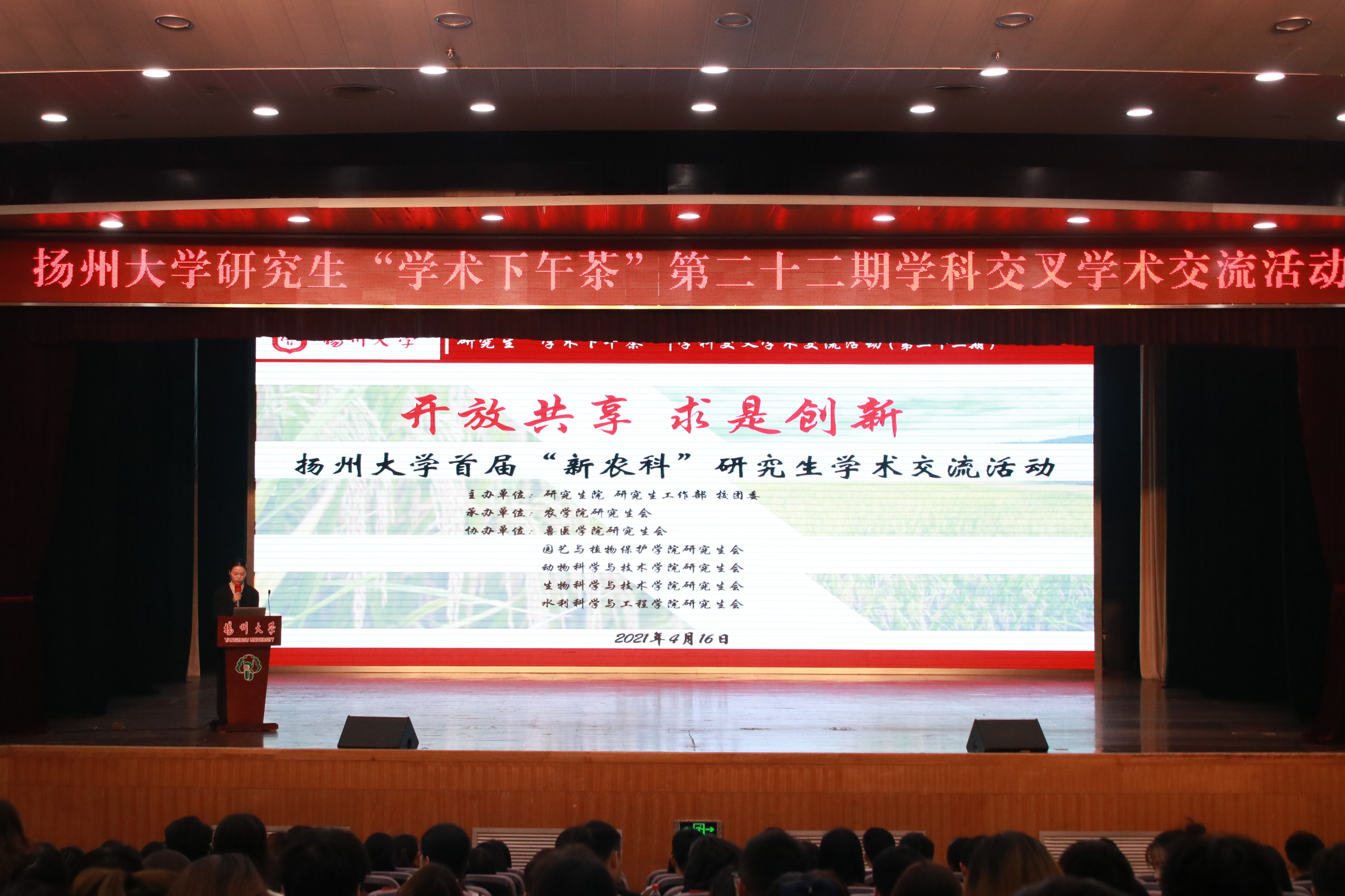 4月16日下午,我院在荷花池校区大学生活动中心三楼小剧场成功举办扬州大学首届“新农科”学术交流活动,此次活动以“开放共享 求是创新”为主题,邀请了包括我院蒋敏老师在内的来自6个学院的专家教师作为评委专家。