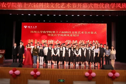 为了庆祝建党一百周年,我院于5月8日举办了扬州大学农学院第十六届科技文化艺术节开幕式暨优良学风班风采展评活动,院领导、各班班主任、团委(学工办)全体老师出席活动。