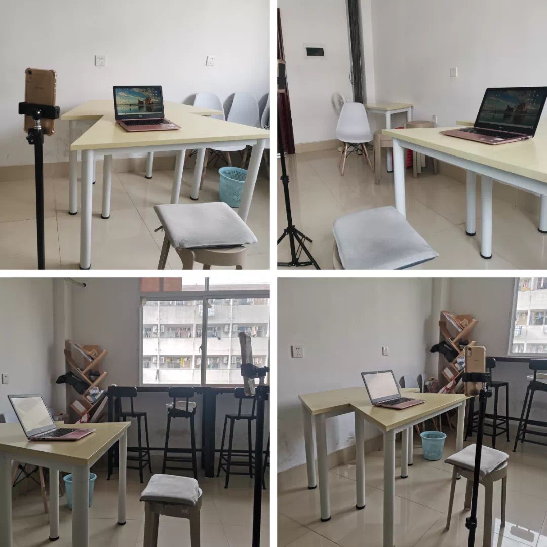 各位同学积极参与,寻找合适的教室、摆放桌椅,并配备多个手机支架和补光灯,保证考研复试时环境干净整洁,网络流畅清晰。