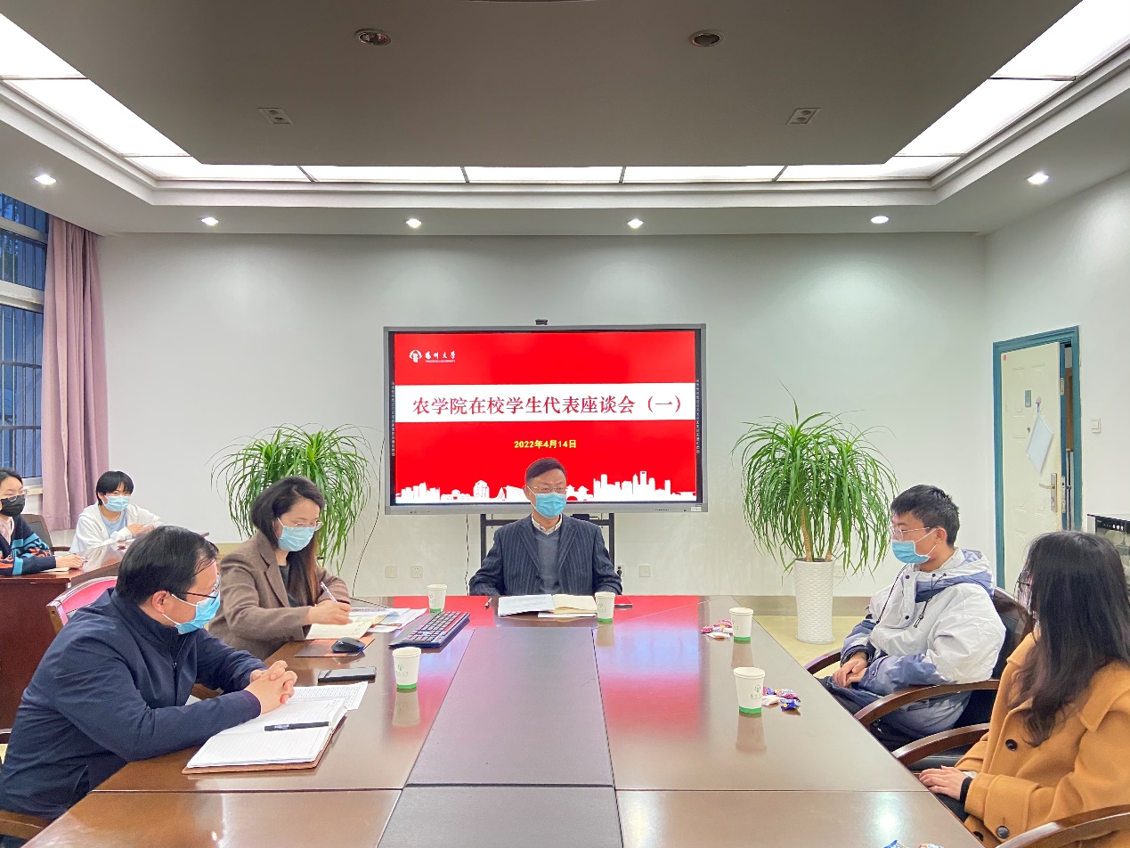 4月15日,学院召开疫情防控工作学生座谈会。学院党委书记王军、副院长陈源,住校辅导员及学生代表参加了座谈会,会议由学院团委书记周立云主持。
