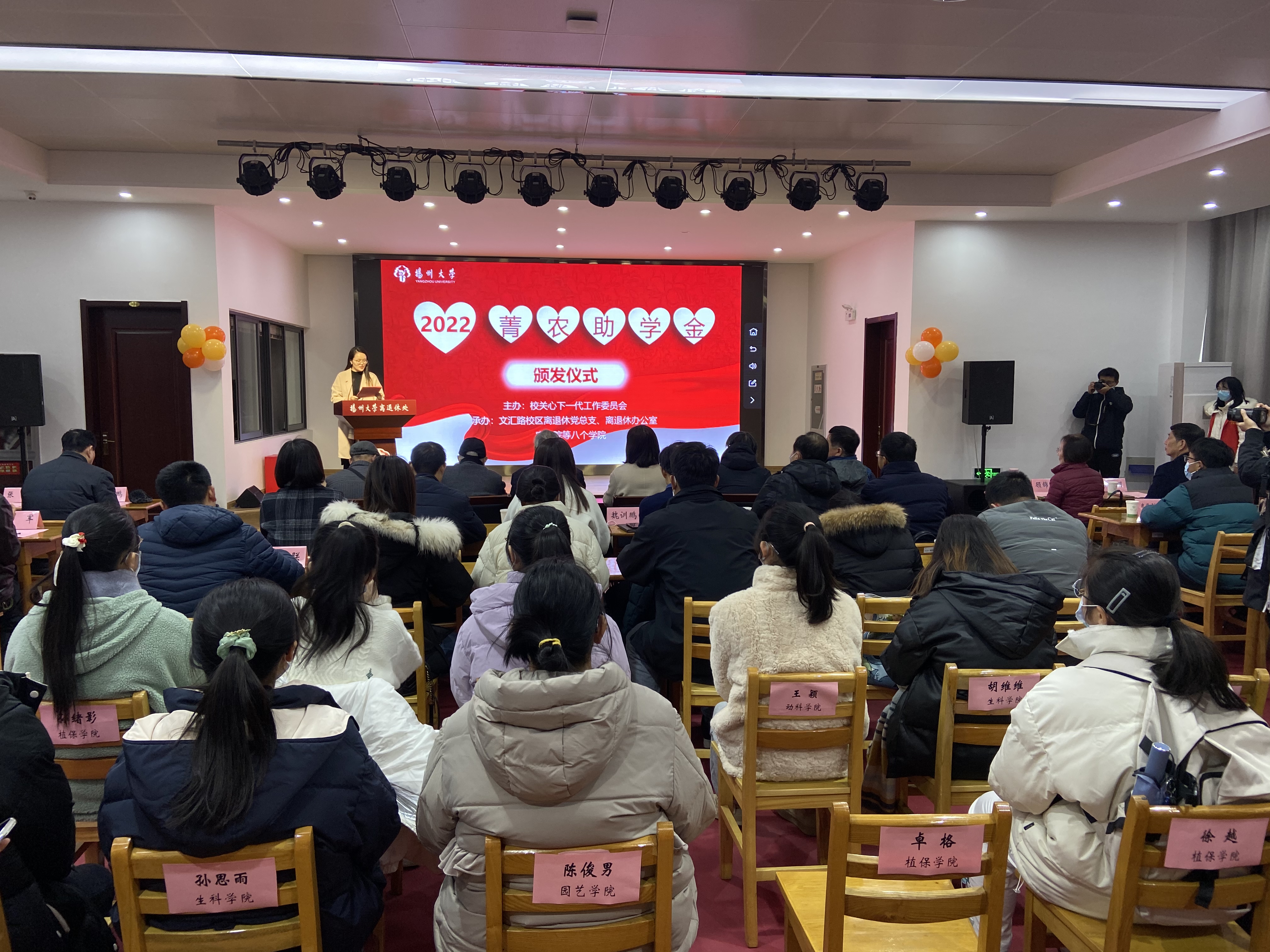 据了解,7年前,为继承发扬离休老干部和退休老同志多年来捐款捐物、助学帮困的热心、善心和爱心,文汇路校区离退休党总支倡议成立“菁农助学帮困基金”,希望帮助生活有困难的学生顺利完成学业,支持学校事业发展。