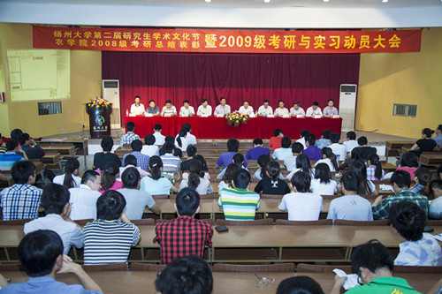 会议共分两阶段进行。第一阶段召开科研与生产实习动员。由2009级实习总负责老师陈德华教授对有关实习工作进行具体部署,分管教学的陆建飞副院长进行实习动员,他希望同学们通过参加科研与生产实习,一方面要认真巩固所学知识,切实打牢专业基础,着力提升专业素质,不断增强核心竞争力;另一方面,还要严格遵守实习纪律,倍加珍惜师生情意,真正做到善待自己、善待他人、善待社会,在毕业实习和人际交往中学会做人、做事,努力增强社会适应性。会议第二阶段举行本科2008级考研总结表彰和本科2009级学生考研动员,共八项议程。第一项议程由院党委生永明副书记宣读表彰决定,共表彰了四个考研先进班集体、五位考研优秀指导老师、七位考研服务志愿者。会议第二项议程是由出席大会领导为获奖集体和个人进行颁奖并向2008级考取本院研究生的同学颁发奖金。会议第三项议程是请各学科带头人分别介绍了所在学科(专业)情况和相关报考要求。老院长、作物栽培学与耕作学学科带头人、博士生导师张洪程教授在介绍本学科情况的同时,还为同学们剖析了现代社会的大学生们面对“到底要不要考研,为什么要考研”等问题的迷茫与困惑,张洪程老师由点及面全面系统的跟大家讲述了当下的就业考研形式,赢得了场下的同学们阵阵掌声。第四项议程安排了研究生、考研本科生代表发言,与2009级准考研生们深入进行考验经验交流。第五项议程为聘任优秀准研究生们担任2009级考研辅导员并颁发聘书。第六项议程请农学院院长、博士生导师郭文善教授讲话,郭院长代表学院宣布了针对2009级学生制定的有关考研奖励及优惠政策,他殷切希望广大同学珍惜在校期间的学习机会,妥善处理好实习、考研及就业三者关系,把实习考研与巩固专业知识、拓展业务素质、提升就业竞争实力有机结合起来。第七项议程请党委研工部副部长、研究生处副处长吉丹如老师讲话,吉处长就我院近几年来在研究生工作上做出的贡献以及取得的显著成绩给予了充分肯定,并对我院全体党政机关领导、课题导师等对研究生教育的重视与付出表示了感谢,最后他祝愿我院的研究生教育工作蒸蒸日上,再创辉煌,并祝愿2009级学子能够通过自己的努力考出自己理想的成绩。会议最后一项议程请我院党委书记余吉生老师发表讲话。他指出:考研是顺应时代发展潮流、实现个人梦想、缓解就业压力的客观需要和理性选择,希望全体准备考研的同学发扬锲而不舍、持之以恒的精神,积极备考,沉着应战,力争实现考研目标。至此,我院09级实习、考研、就业工作全面启动。