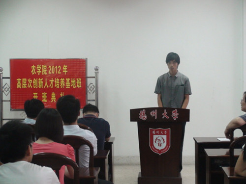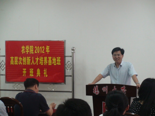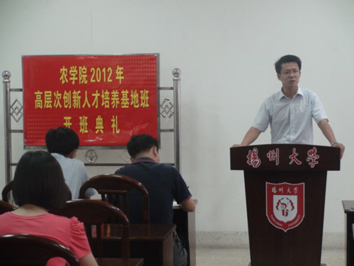 6月21日下午,我院在农牧楼N127成功举办2012年高层次创新人才培养基地班开班仪式。出席此次开班仪式的有院党委生永明副书记、陆建飞副院长、团委佴军书记、辅导员老师、基地班班主任、基地班任课老师代表以及近百名基地班成员。仪式由佴军书记主持。