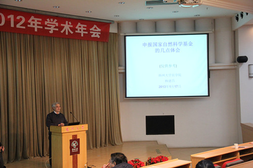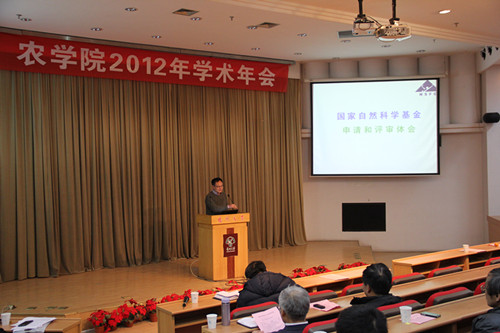 1月17日下午,在农学院2012年学术年会上,生物科学与技术学院王幼平教授、我院杨建昌教授受邀为学院师生做学术报告。