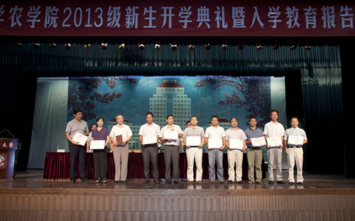 院研究生会主席何理、本科生学生会主席许多分别代表在校研究生、本科生作了发言。他们在发言中与新生分享了自己在校学习、生活和工作中所取得的成绩和经验,并勉励学弟学妹们把握大好青春,确立人生目标,奋力追寻梦想,实现人生跨越。2013级新生代表王妍用热情洋溢的发言表达了新生“坚苦自立”的决心,表示他们一定会在校训精神的激励下,大力弘扬“求是、求实、求新、求精”的校风,与农学院同心、同德、同行,共创一流农学院。