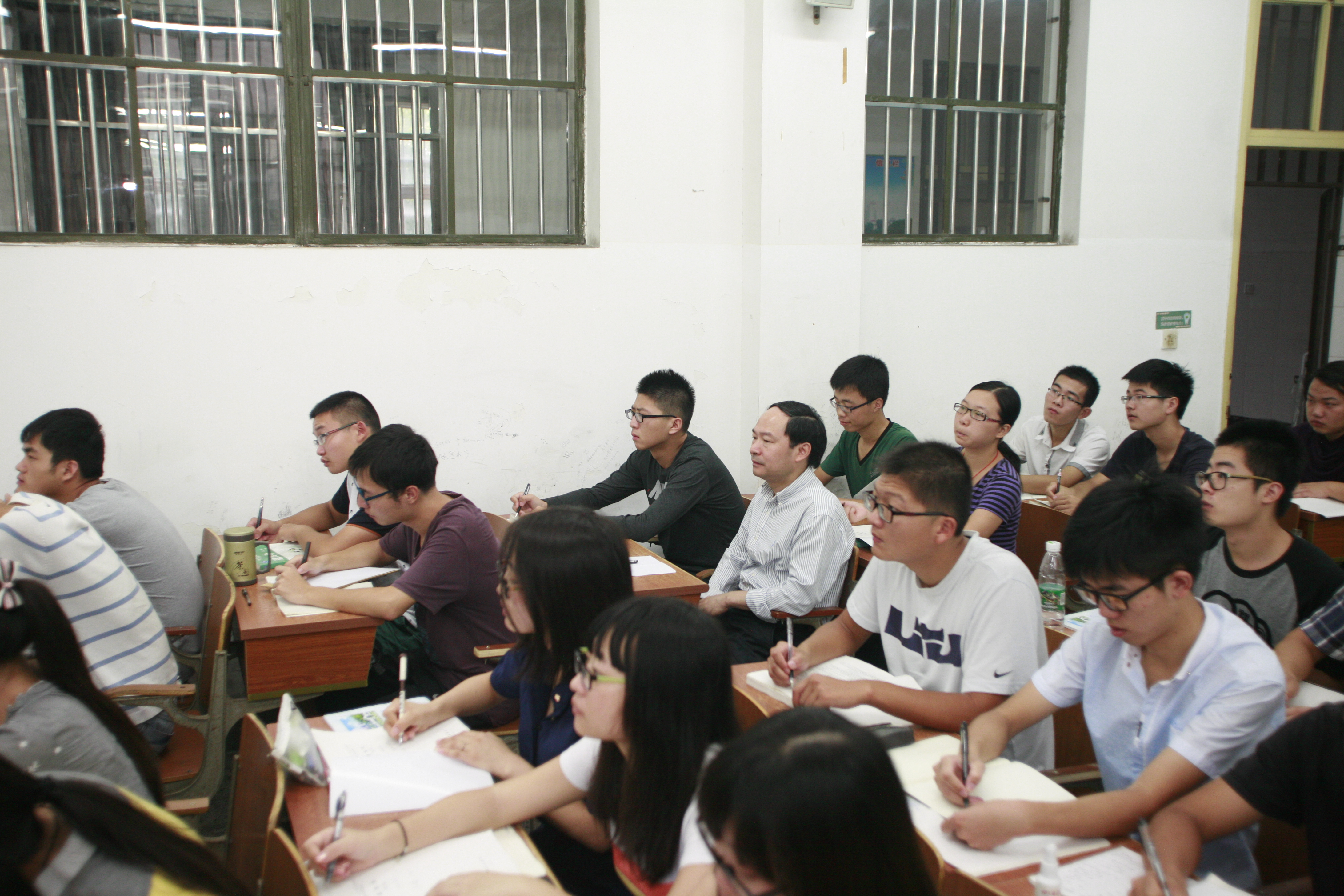 7点55分左右,焦校长走进农学12级课堂,给予学生亲切的问候。他关心了同学们的暑期收获,同时勉励大家在新学期努力学习。正式上课前,焦校长走到学生中坐下。在上课过程中,焦校长一直认真听课,并不时记笔记。课后,焦校长与当堂任课教师、副院长严长杰老师进行了交流,充分肯定了严老师坚持板书的授课方法和对课堂氛围的把控方式。