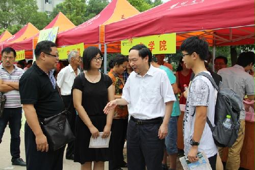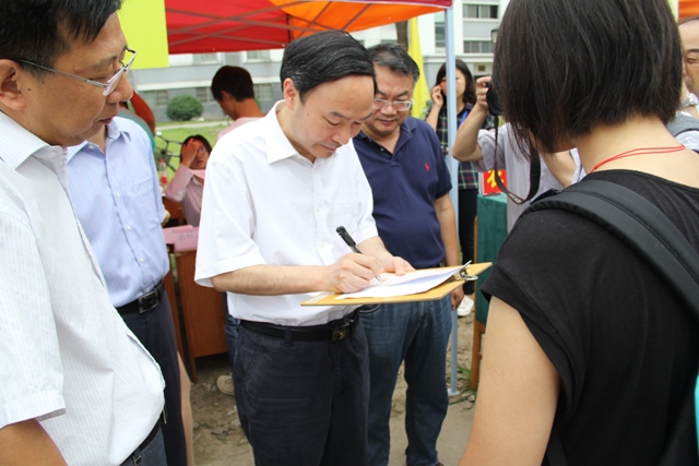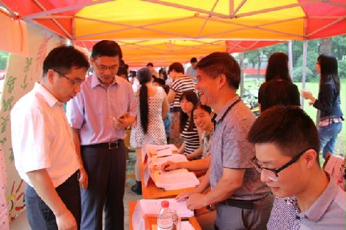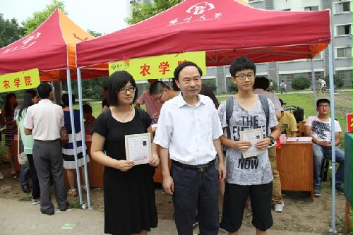 上午,校长焦新安、副校长黄建晔、副校长胡效亚在校相关部门工作人员的陪同下深入我院迎新现场,亲切看望前来报到的新生和家长,并慰问了服务在迎新一线的班主任老师和学生志愿者们。了解到我院庄恒扬教授在成功送走第一届“张家港”班同学后,又重新带起了新的一届“张家港”班学生,校长们均表达了感谢,同时对我院在积极探索的校地联合办学的培养模式给予了肯定,鼓励我们抓好 “张家港班”、“常熟班”,打响农院特色班级。当了解到2名农学院新生立志学农的抱负后,焦新安校长还亲切向他们介绍了学校和农学学科的相关情况,还高兴地在他们的入学纪念卡上签名并与他们合影留念。