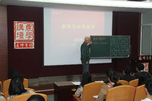 11月11日下午,学院“农学讲坛”再次迎来一位学界泰斗:我国著名的植物数量遗传学和生物统计学家、农业教育家莫惠栋教授。他在农牧楼N127报告厅为学院师生们作了一场精彩的“数独”专题报告。本次报告会由沙爱红副书记主持,学院师生代表共百余人到场倾听了本次报告。