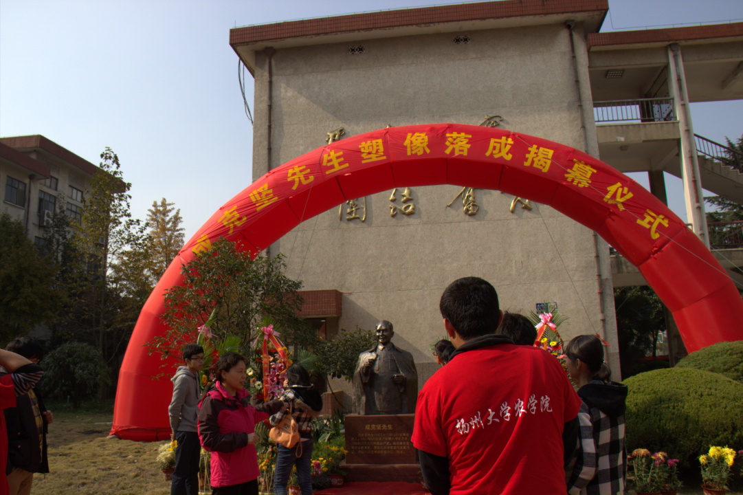 11月16日上午10时许,原苏北农学院首任党委书记,著名的农业教育家成克坚先生塑像落成揭幕仪式在扬州大学文汇路校区23号楼前隆重举行。我院2014级本科生参加了本次活动。