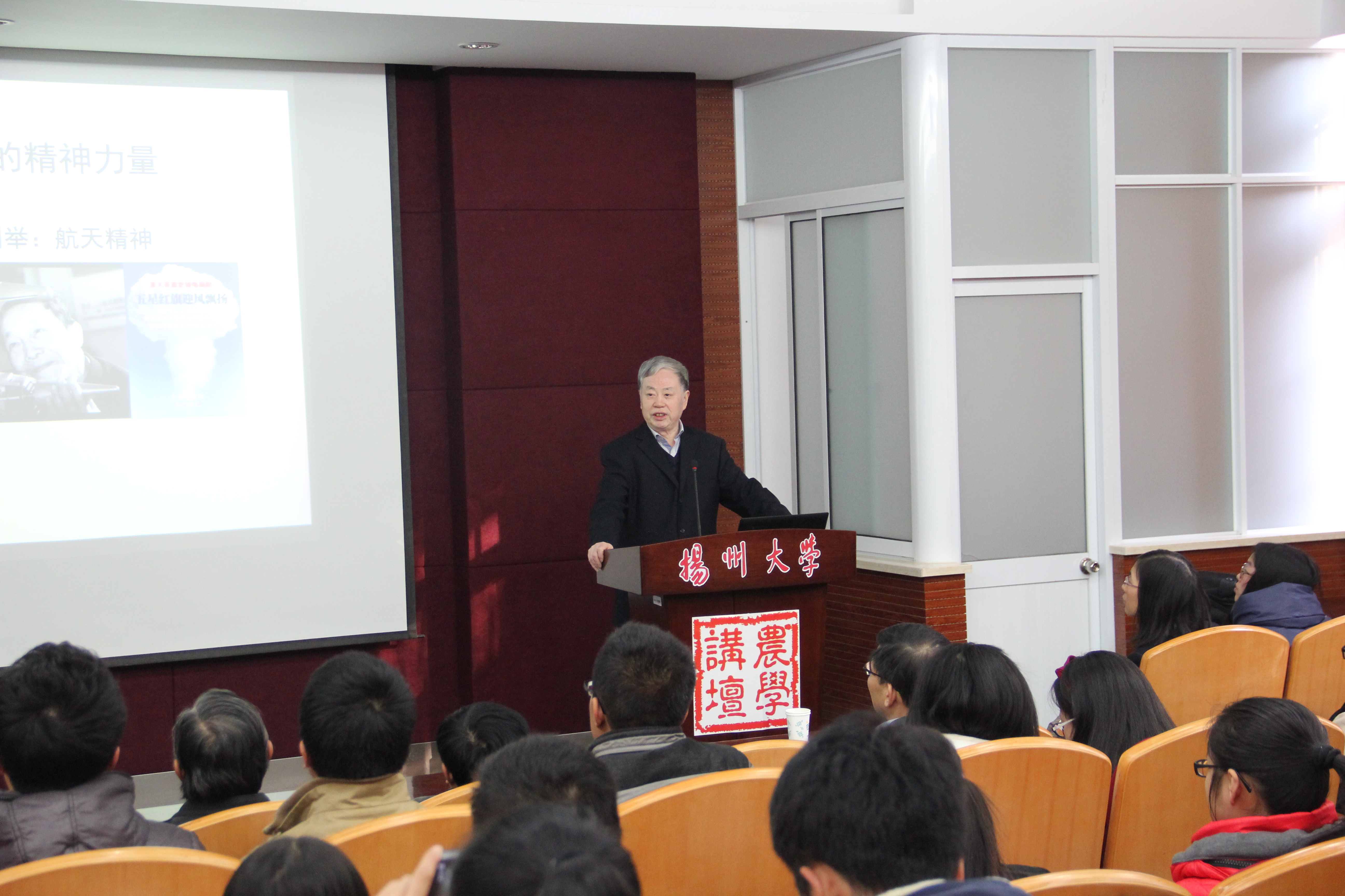 朱院士结合自身经历,从民族精神、杂交水稻事业、团队合作三个方面与师生一起分享他对于个人事业与民族精神、科学精神、团队合作紧密相关的感悟。把一代代科学家坚持的中国杂交水稻事业的精神浓缩为:吃苦耐劳的奉献精神;不畏艰险的乐观精神;坚持不懈的奋斗精神;不断进取的创新精神;通力合作的团结精神;实事求是的科学精神;敬业忠心的爱国精神;心系天下的博爱精神。最后,朱院士讲了他的科研团队,作为一个院士,他将他的研究成果归功于他的团队,同时阐述了团队在科研事业中的重要性。