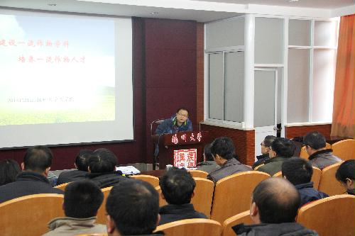 12月21日,教育部学位管理与研究生教育司(国务院学位委员会办公室)学术学位研究生教育处副处长欧百钢为我院教师作了“建设一流作物学科,培养一流作物人才”的专题报告,校学科办刘拥军主任、戴玉琴副主任出席了报告会。报告会由刘巧泉院长主持。