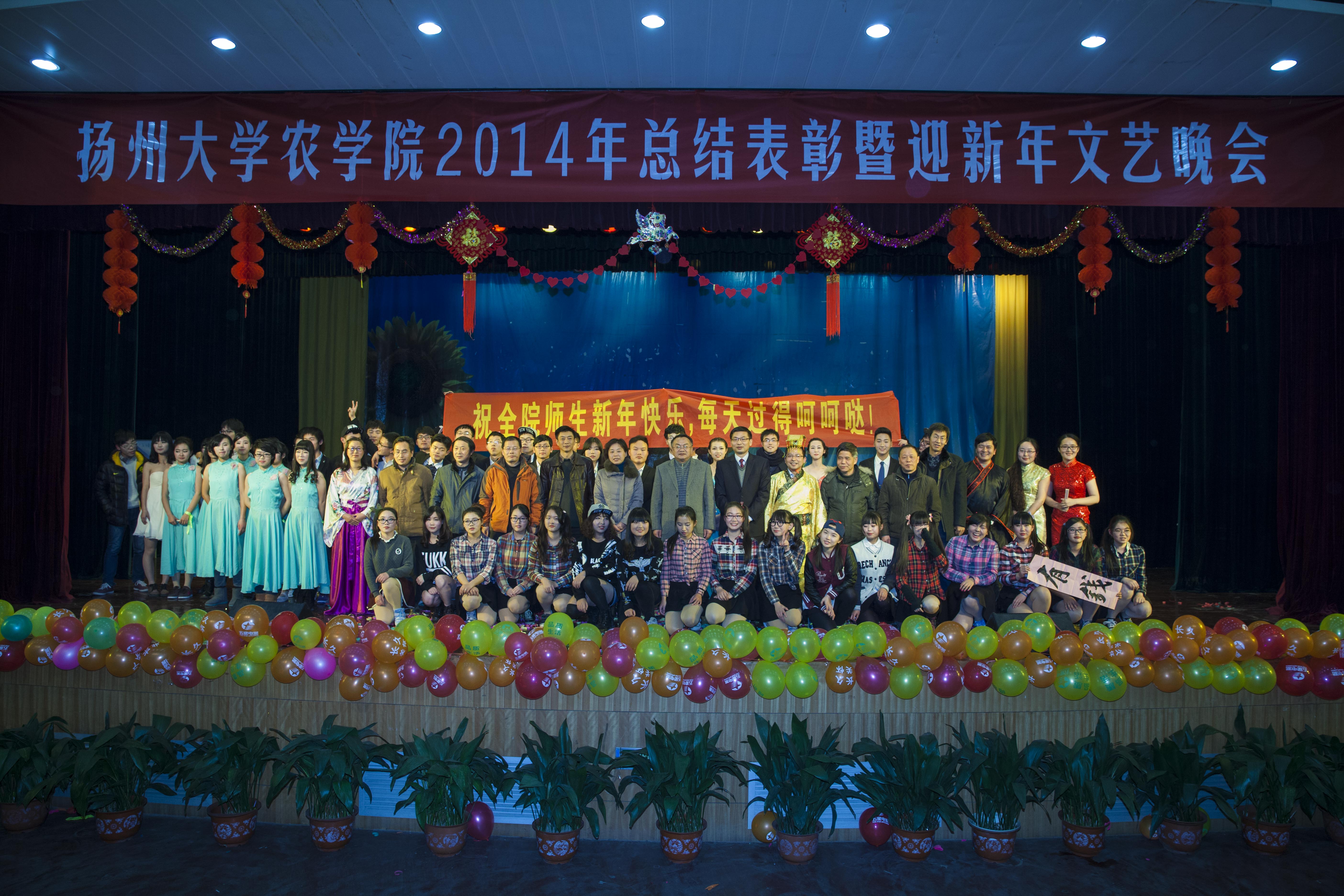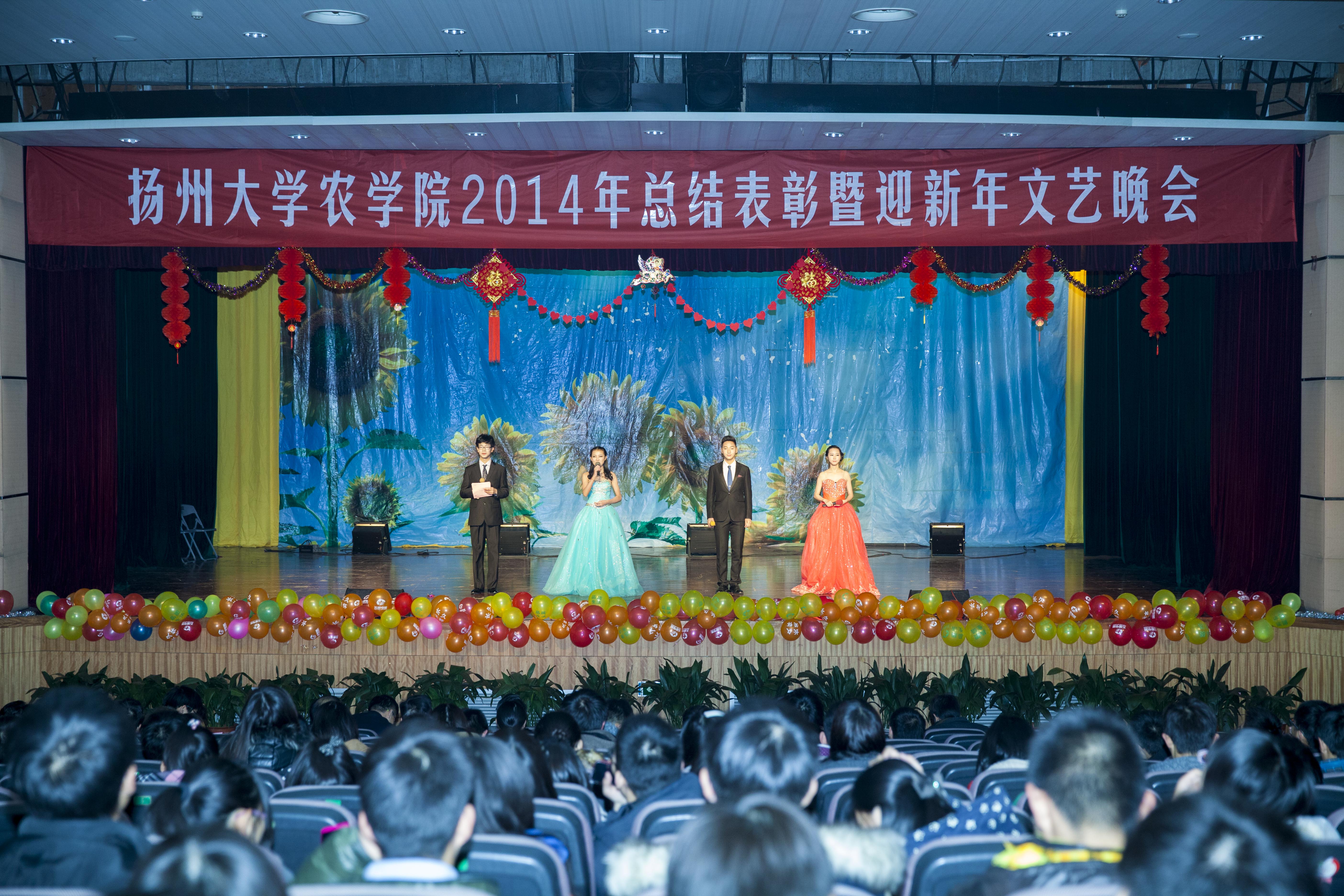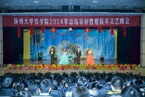 12月28日晚,农学院2014年总结表彰暨迎新年文艺晚会在大学生活动中心小剧场成功举办。本次活动由农学院团委、农学院工会主办,院学生会、研究生会、学生社团联合会、新闻中心承办。当晚,院党委郭文善书记、刘巧泉院长、沙爱红副书记、严长杰副院长、陈源副院长与院团委辅导员、班主任和教师代表以及学院2013、2014级本科生和研究生共同出席了本场晚会。