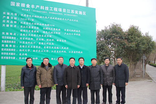 3月5日上午,校党委夏锦文书记赴我校农学院位于泰州市姜堰区沈高镇河横村的试验基地视察指导工作,姜堰区委常委、副区长肖延川等陪同视察。在以我校作为技术依托单位的江苏省姜堰现代农业产业园区,夏书记听取了园区负责人的介绍,重点参观了设在该园区内的“扬州大学姜堰现代农业联盟”创新实验室和专家工作站。在田间试验基地,夏书记深入田间察看了解试验基地的相关设施、详细询问小麦油菜等作物的生长情况,并认真听取了张洪程教授和郭文善教授等有关试验基地的建设与发展、以及国家粮食丰产科技工程项目在该试验基地的实施情况汇报。