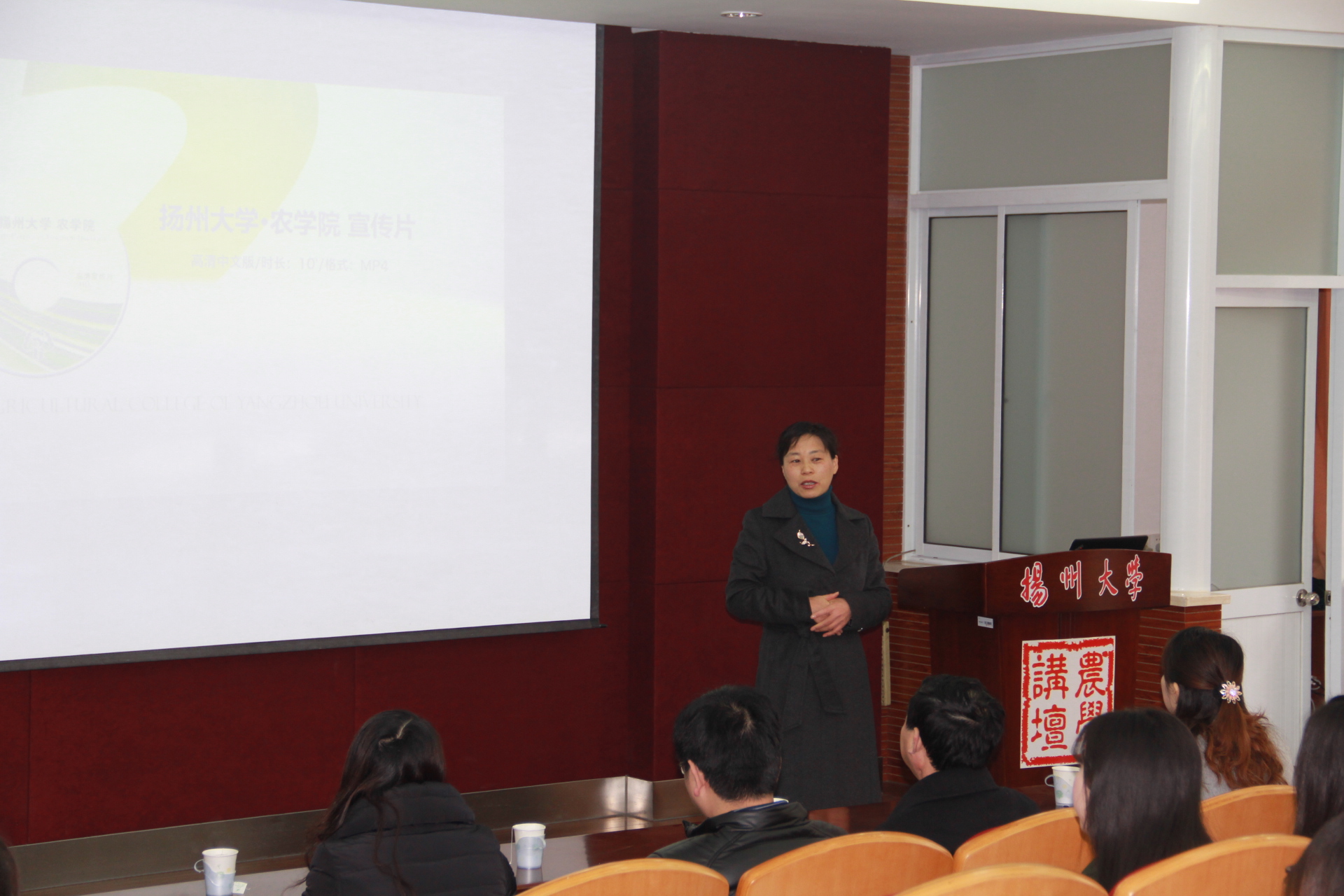 上午9时30分,两年级67名同学在江苏农林职业技术学院农学园艺系杨宝林副主任和党总支董慧副书记的带领下乘车来到学院。院党委沙爱红副书记,院长助理、13级作物生产技术专业转本分段班班主任高辉老师和院团委全体辅导员在农牧楼N127接待了来访师生。沙书记代表院党委、行政欢迎同学们来院参观,并希望大家能够努力学习,在一至两年后都能达到转段的基本要求,顺利进入我院继续学习深造。同学们观看了学院的宣传片。随后,高辉老师为同学们介绍了我校和我院的基本情况,尤其对我院的专业设置、本科生培养和研究型教学等方面进行了重点讲解;他希望同学们重视英语和计算机能力的培养,端正个人的学习态度,成为有抱负、有理想的农林人才。