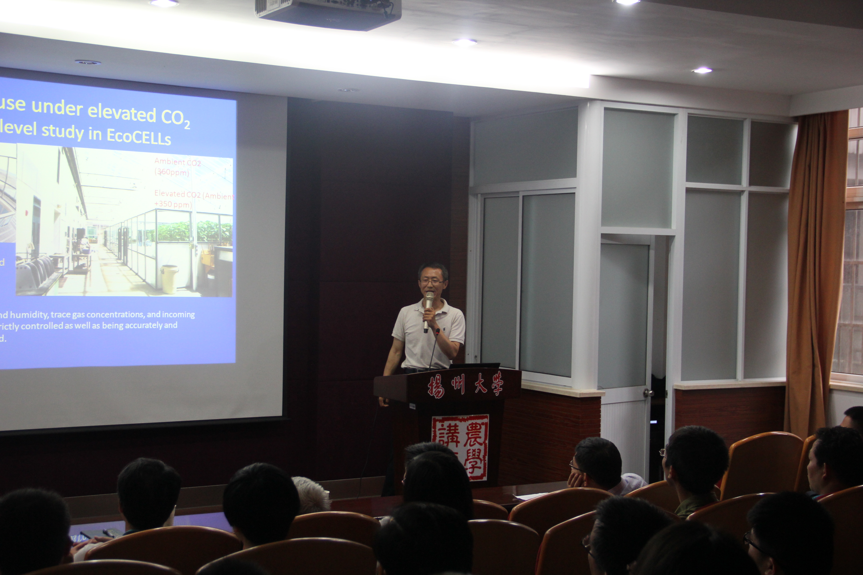 惠大丰教授作了题为“Global change and ecosystem carbon cycling: case studies of precipitation change”的报告,报告以一些全球气候变化研究案例说明了实验数据模型如何帮助我们理解全球气候变化,尤其是降雨量的变化,对陆地生态系统带来的影响。报告全过程用英语进行,报告会吸引了我院众多教师和研究生前来参加。师生们与惠教授进行了充分的交流与互动。