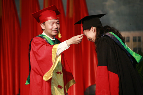 之后,刘巧泉教授宣读学位授予决定。焦新安教授亲自为我院6名获得博士学位的同学授予学位,并一一合影留念。接下来,焦新安教授、俞洪亮教授、刘巧泉教授和曾祥华教授分别为我院获得硕士学位的51名同学和获得学士学位的189位同学授予学位,合影留念。