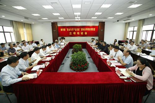 9月29日上午,教育部“农业与农产品安全国际合作联合实验室”立项论证会在我校召开。教育部科技司副司长高润生出席并讲话。教育部科技发展中心高校科技产业处处长贾一伟主持会议。校长、农业与农产品安全国际合作联合实验室主任焦新安教授汇报实验室建设情况。加拿大驻华使馆农业公赞Murray Gwyer先生、加拿大农业协会董事局主席Dwyer, LM女士、副校长黄建晔、省教育厅科技产业处处长张兆臣分别致辞。刘祖汉副校长、洪涛副校长,教育部科技司综合处李人杰、省教育厅科技产业处丁同玉副处长出席会议。