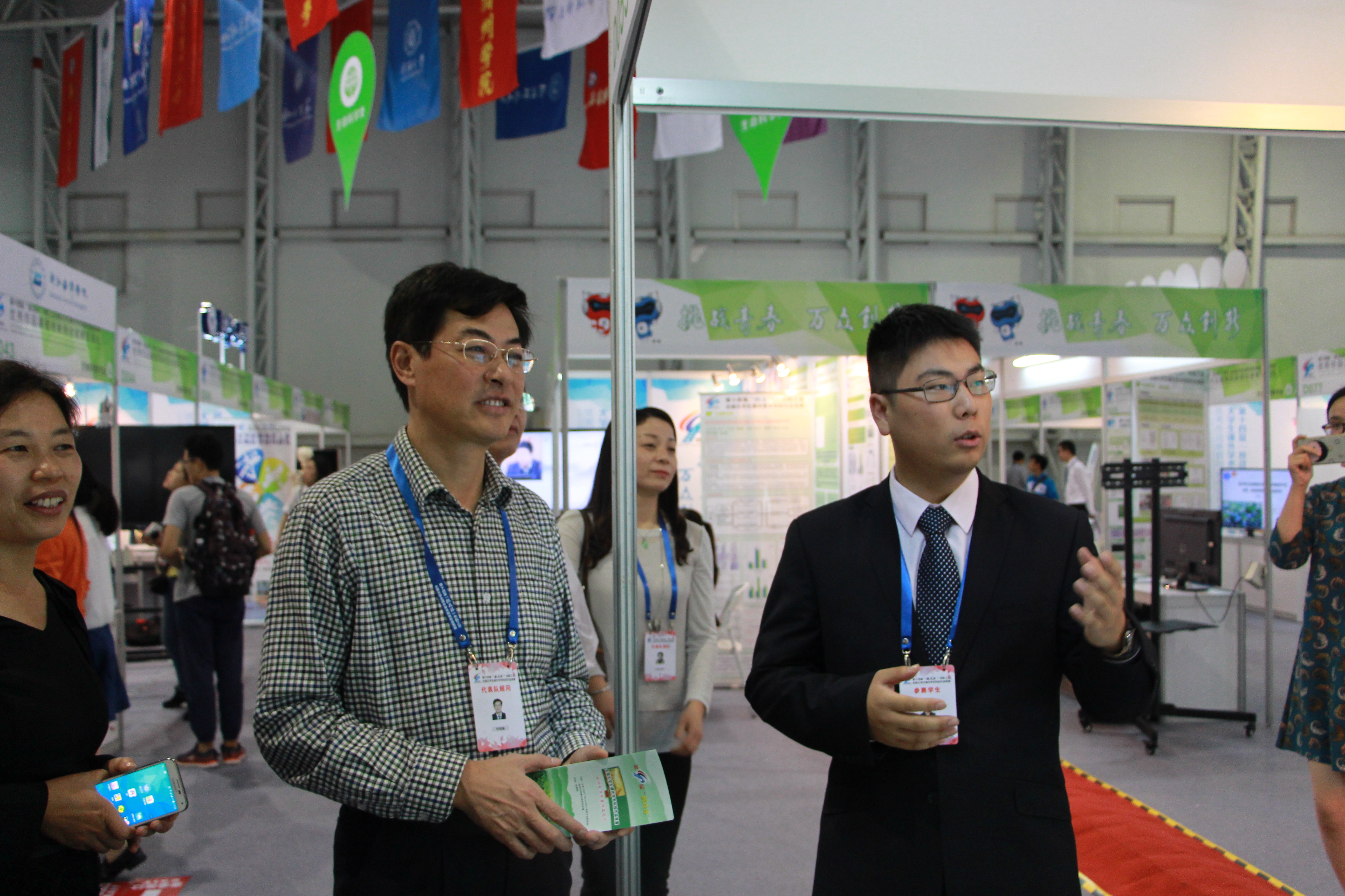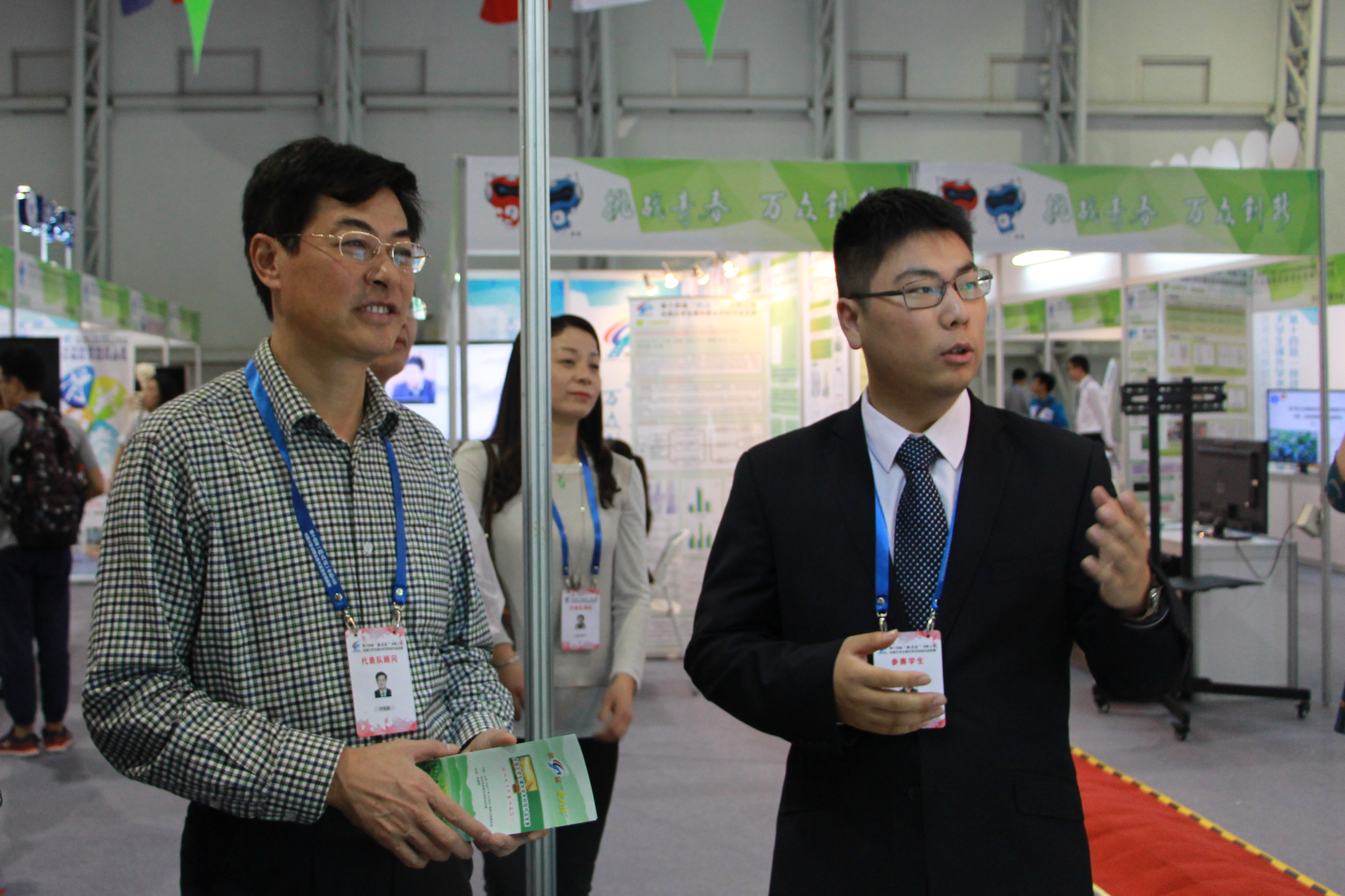 校党委副书记、副校长叶柏森老师亲临展台听取徐暑晖同学的汇报并给予指导