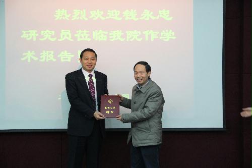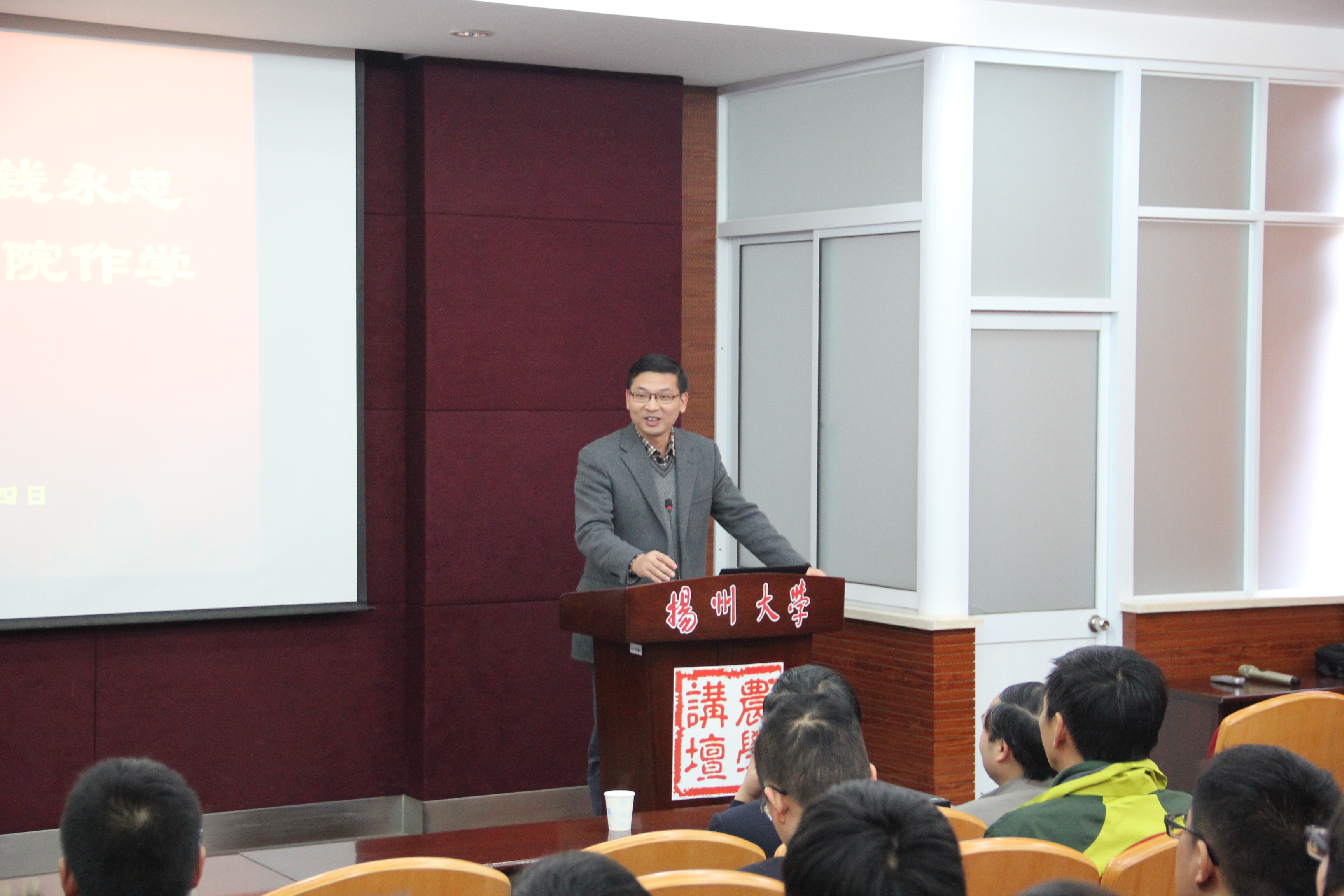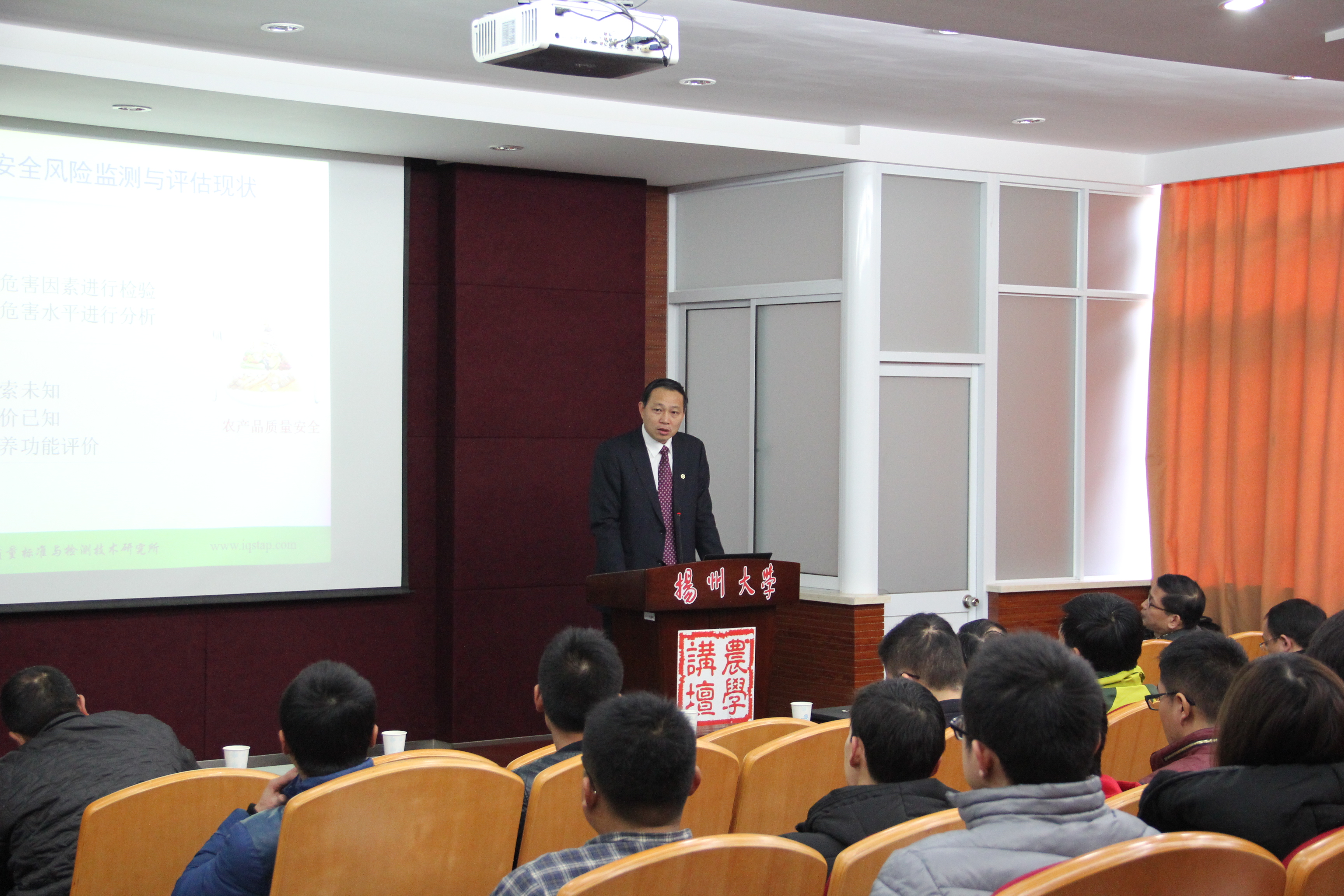 聘任仪式后,钱永忠研究员为农学院师生作了题为“农产品质量安全风险监测与评估研究进展”的学术报告。