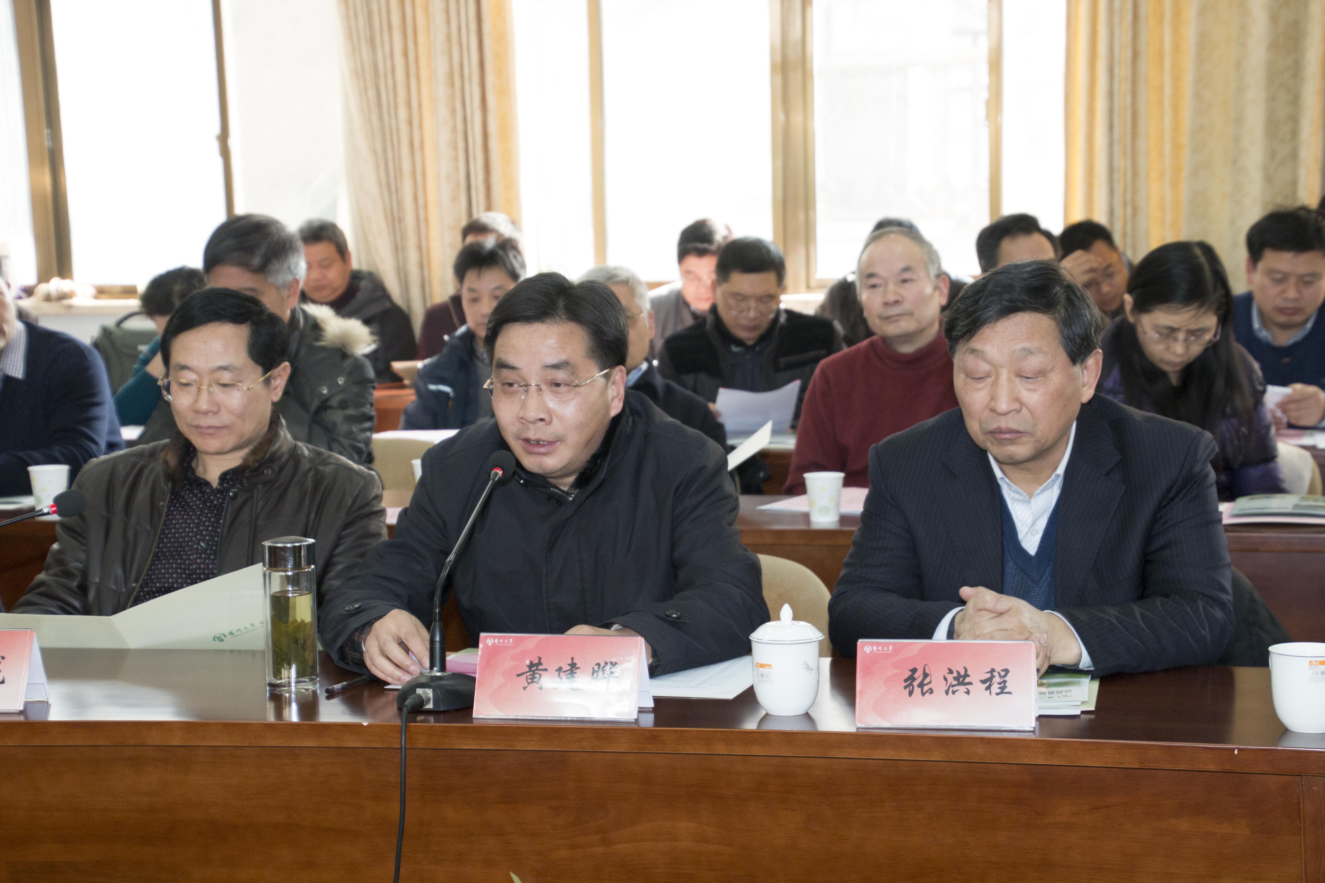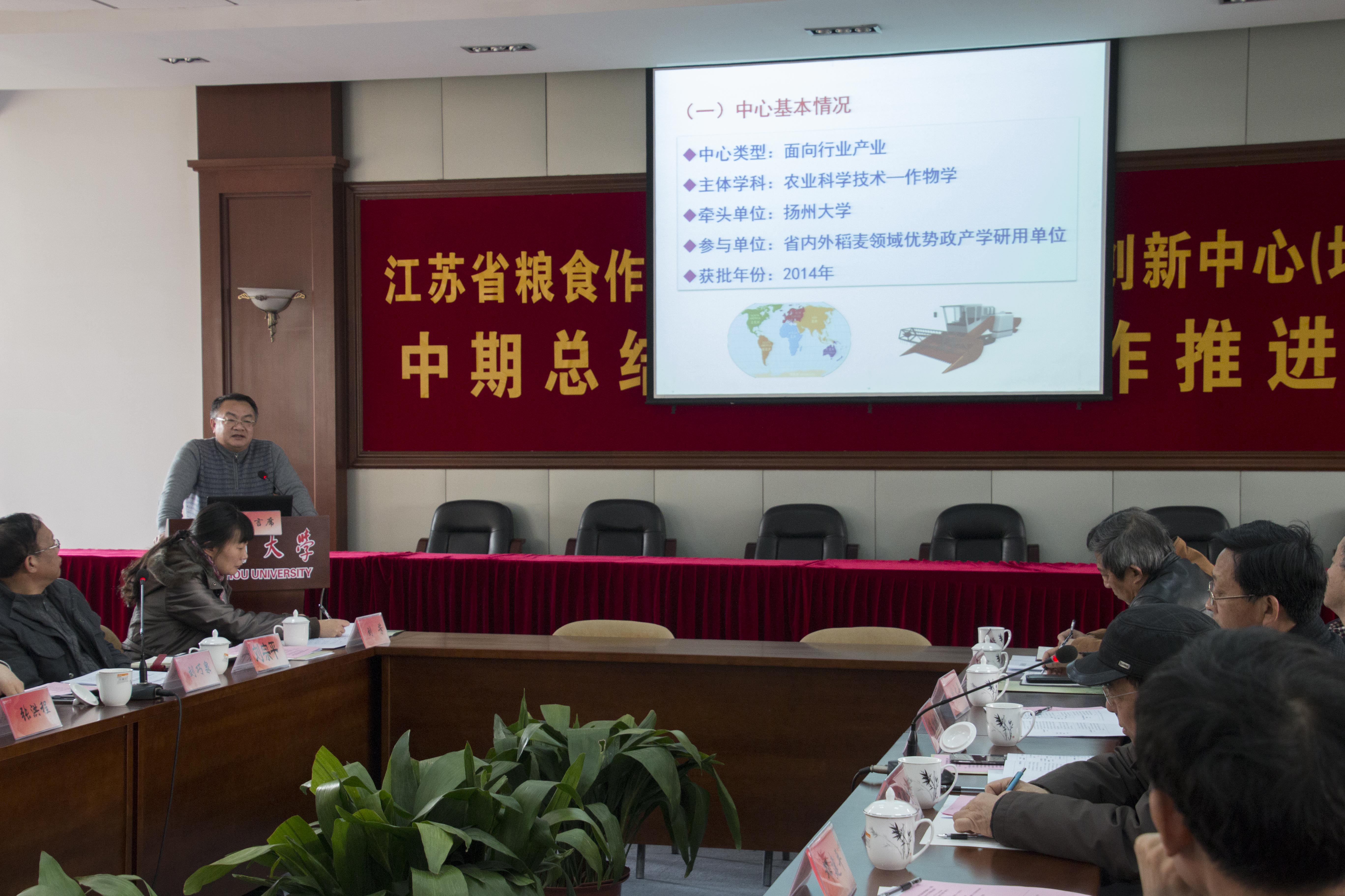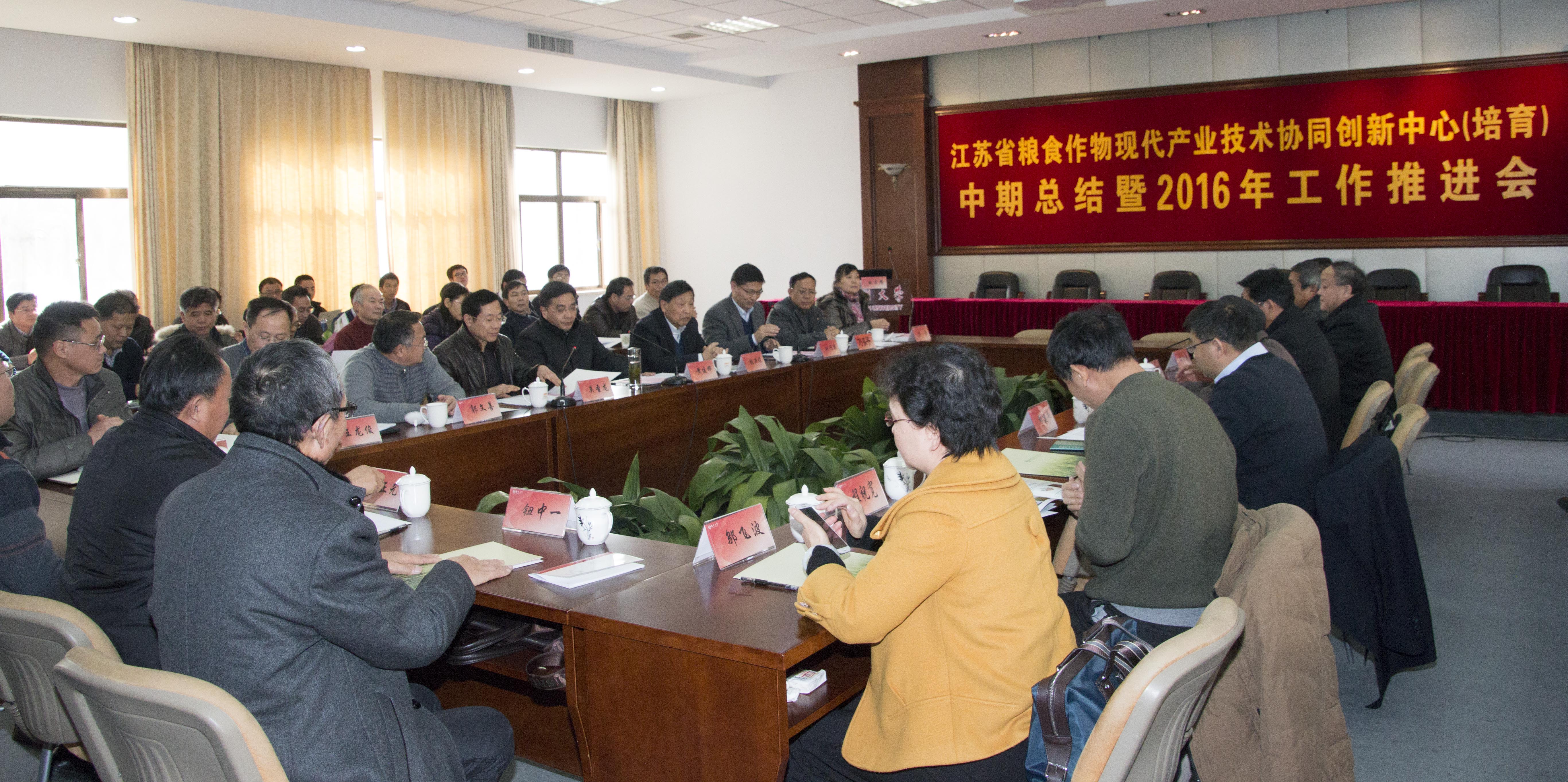 1月15日下午,江苏省粮食作物现代产业技术协同创新中心(培育)中期总结暨2016年工作推进会在荷花池校区行政楼一楼报告厅召开。副校长黄建晔教授出席会议并致辞,中心首席科学家张洪程院士、程顺和院士、科技处吴圣龙处长、中心主任郭文善教授、中心副主任刘巧泉教授及各创新团队60多人参加了推进会。