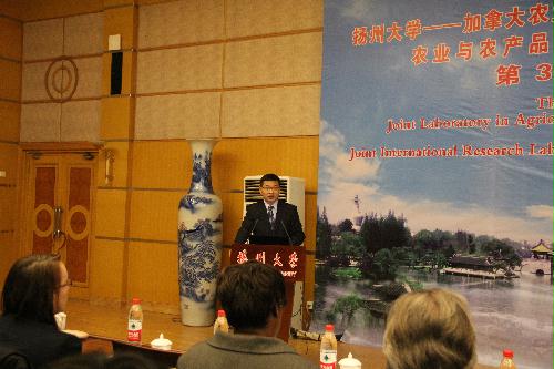 研讨会由扬州大学-加拿大农业与农业食品部农业科学联合实验室、扬州大学农业与农产品安全国际合作联合实验室、国际处、海外教育学院、科技处、研究生院、农学院共同举办。国际处秦爱建处长、海外教育学院郭丽院长、农学院郭文善书记、严长杰副院长、陈源副院长、联合实验室周桂生副主任等150多名师生参加了研讨会。