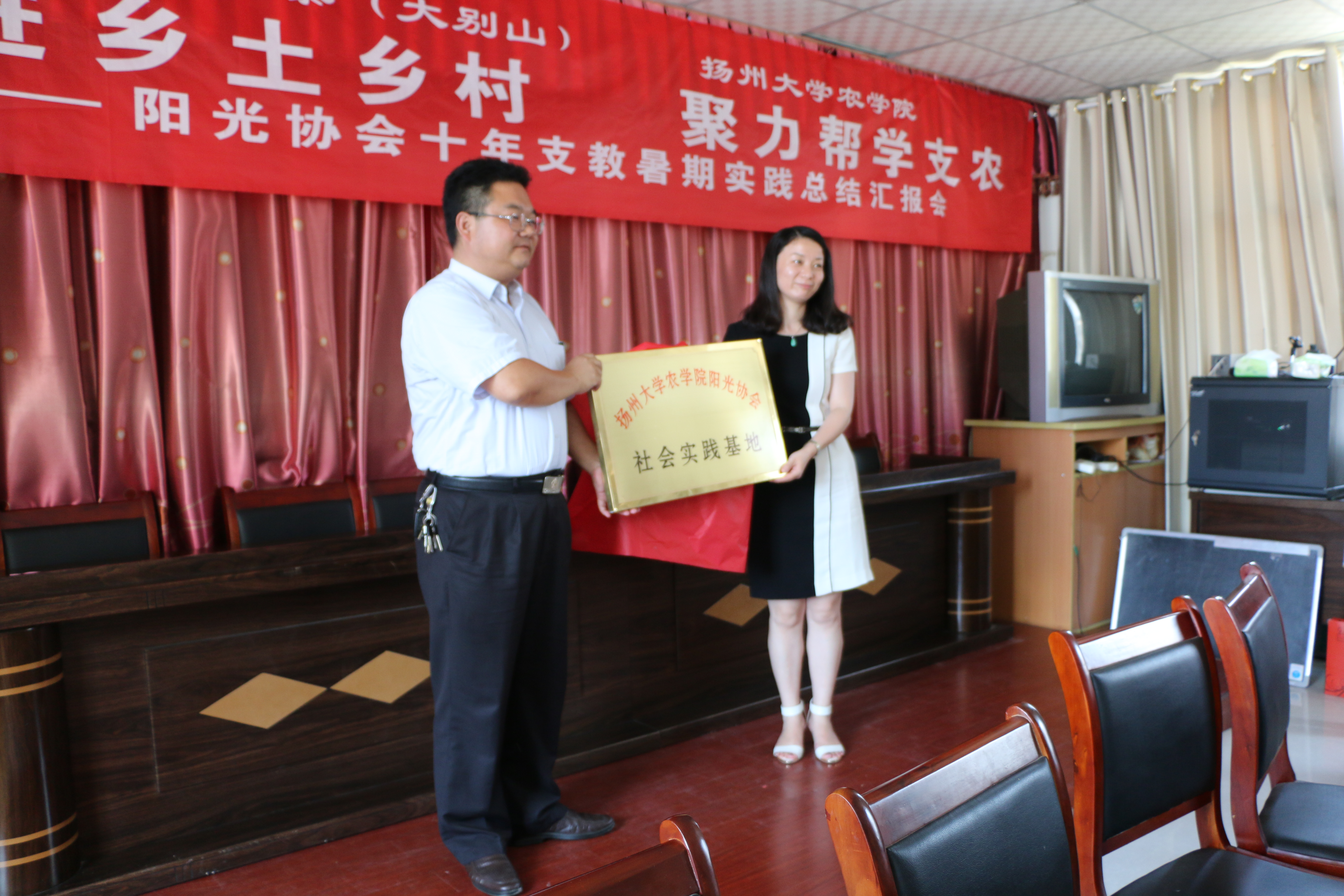 座谈会上,与会人员通过观看阳光协会支教十周年回顾视频和代表发言,为协会十年坚持支教大别山、无私付出的精神深深感染。扬州恒通集团作为爱心企业捐赠善款,用于购买教学物资和设立奖学金,为100名左右参加支教活动的学生发放了书包、学习用品,为两所小学10个班级捐赠了运动器材,为支教活动提供便利的村委捐赠了办公设备。深入了解后,校地双方决定将支教地建设成扬州大学学生暑期社会实践基地,借此助力支教活动长期化发展。此外,农村区域发展1401班“张家港班”同学们自发在大别山区成立“小小张家港班”,表示将进行长期定向帮扶。叶书记在讲话中强调,“公益支教路上不孤单,阳光协会通过十年的坚持,获得了社会各界的关注,为大别山汇聚了更多的关爱,值得点赞!”。