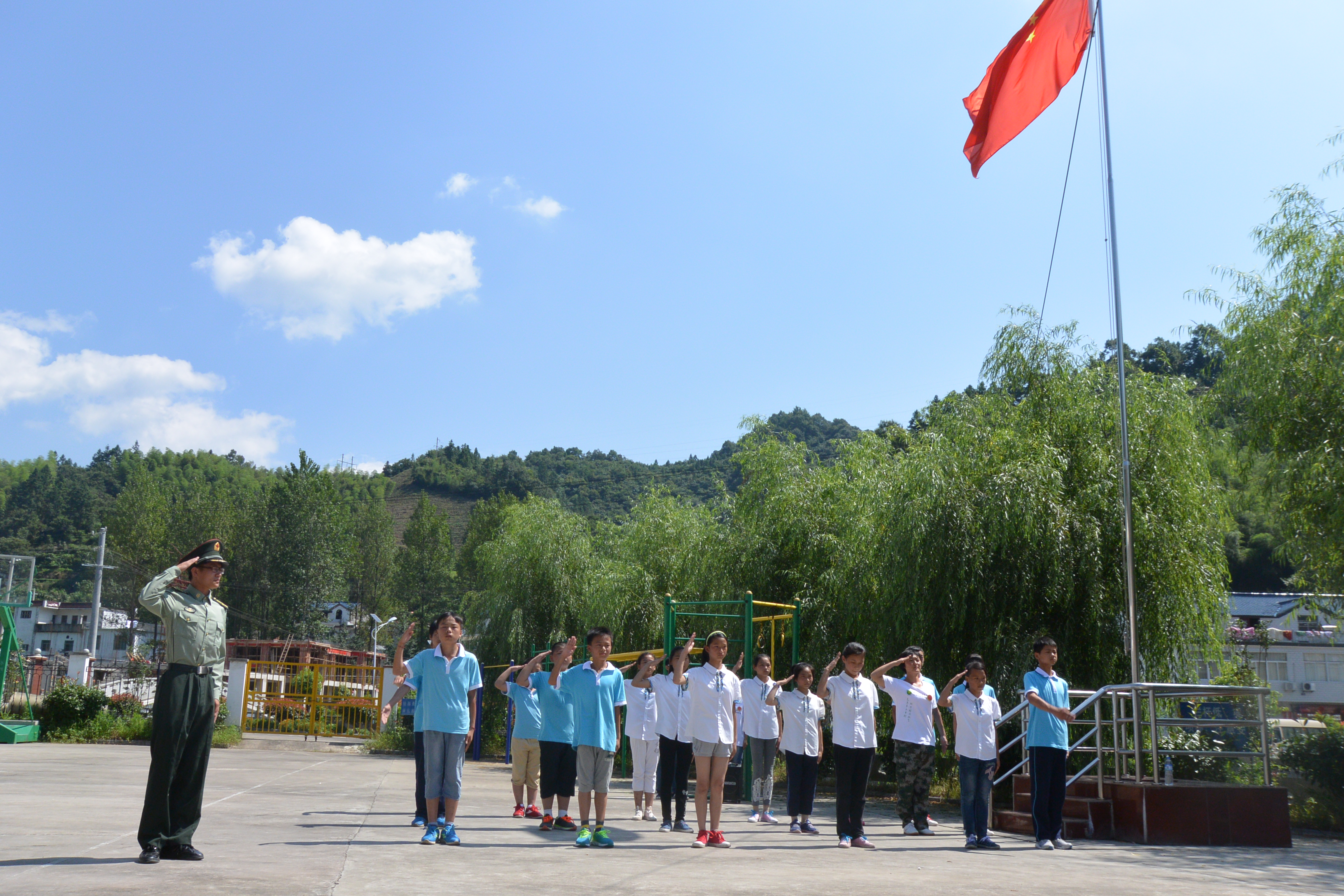 观摩国旗班升起仪式