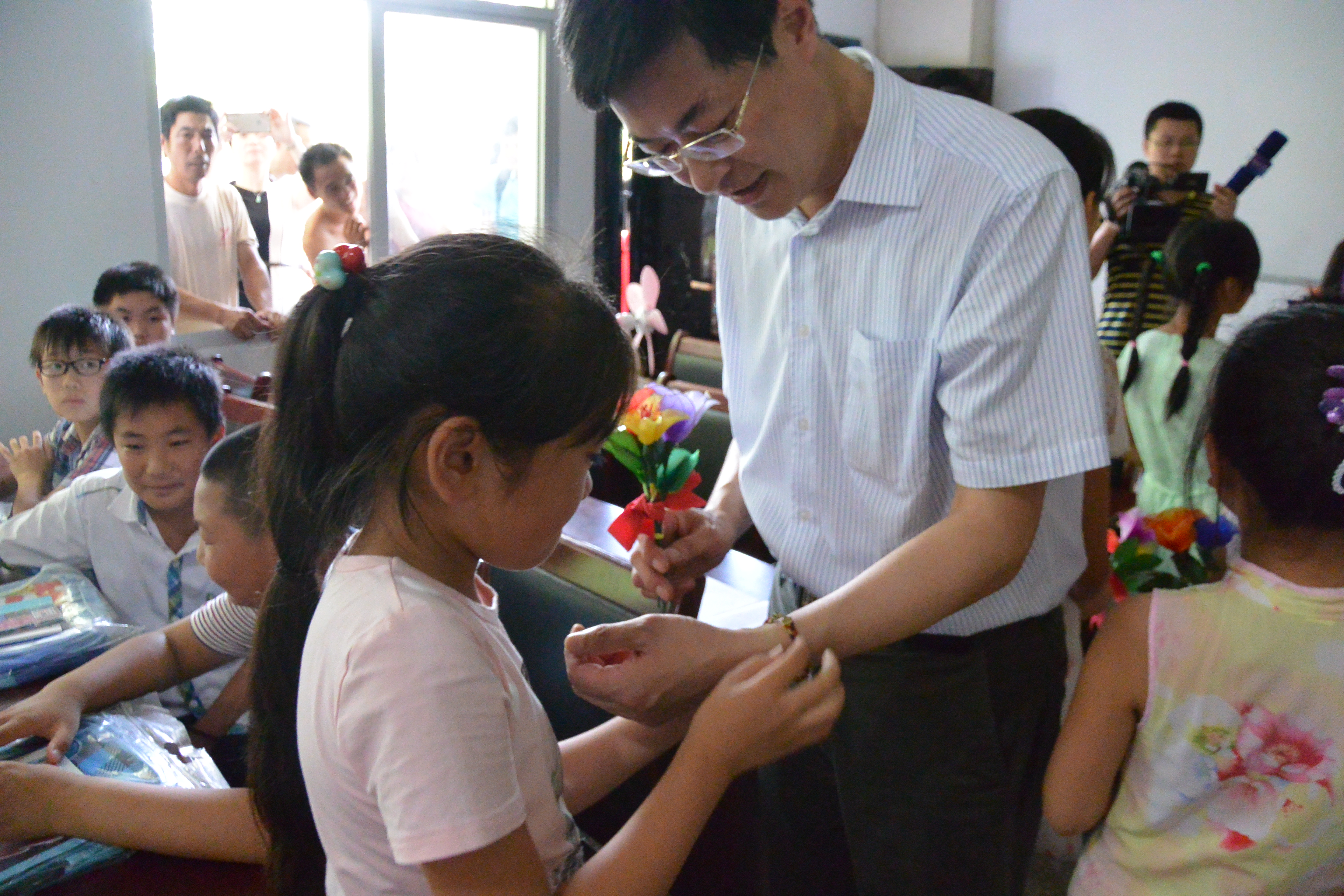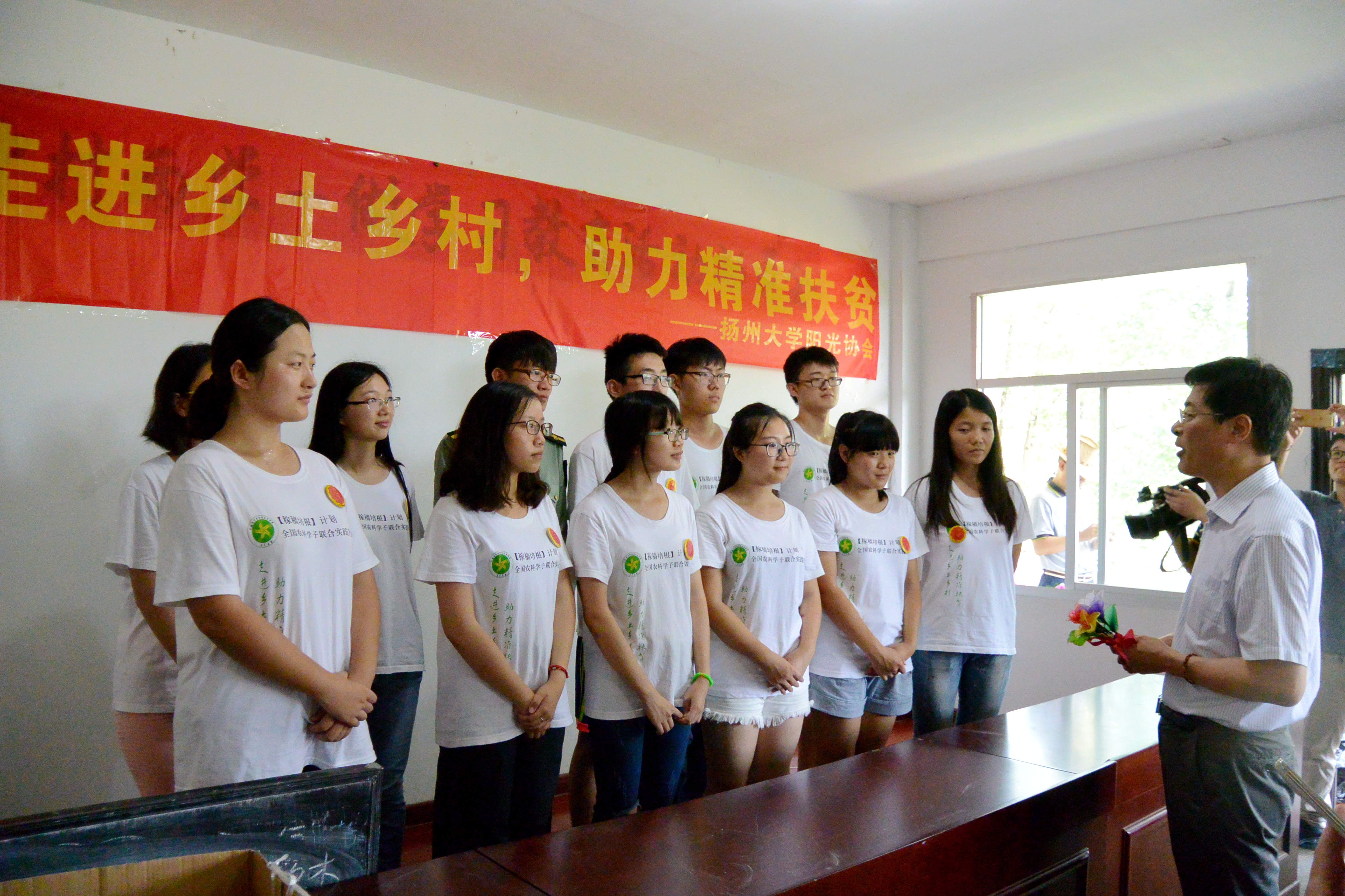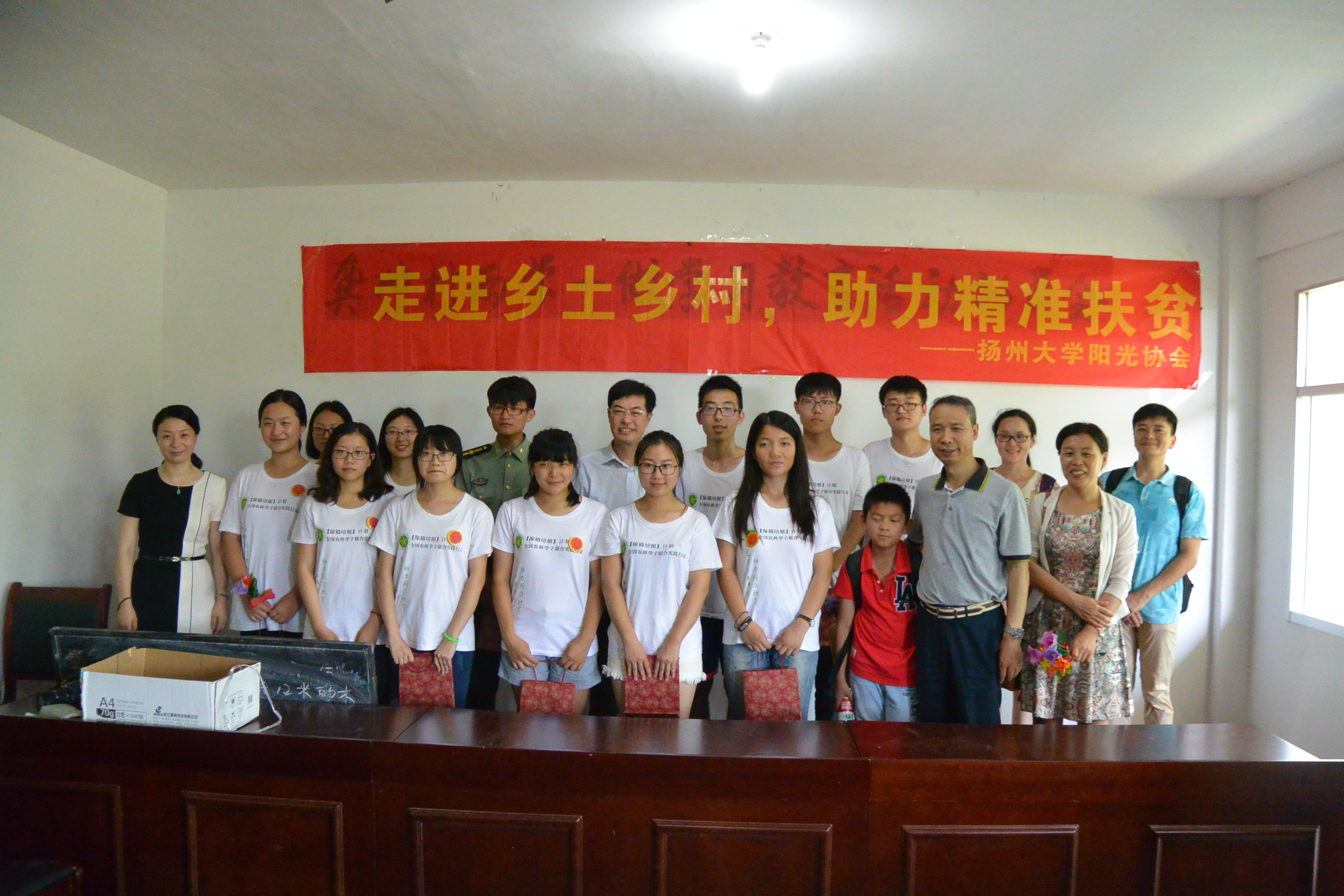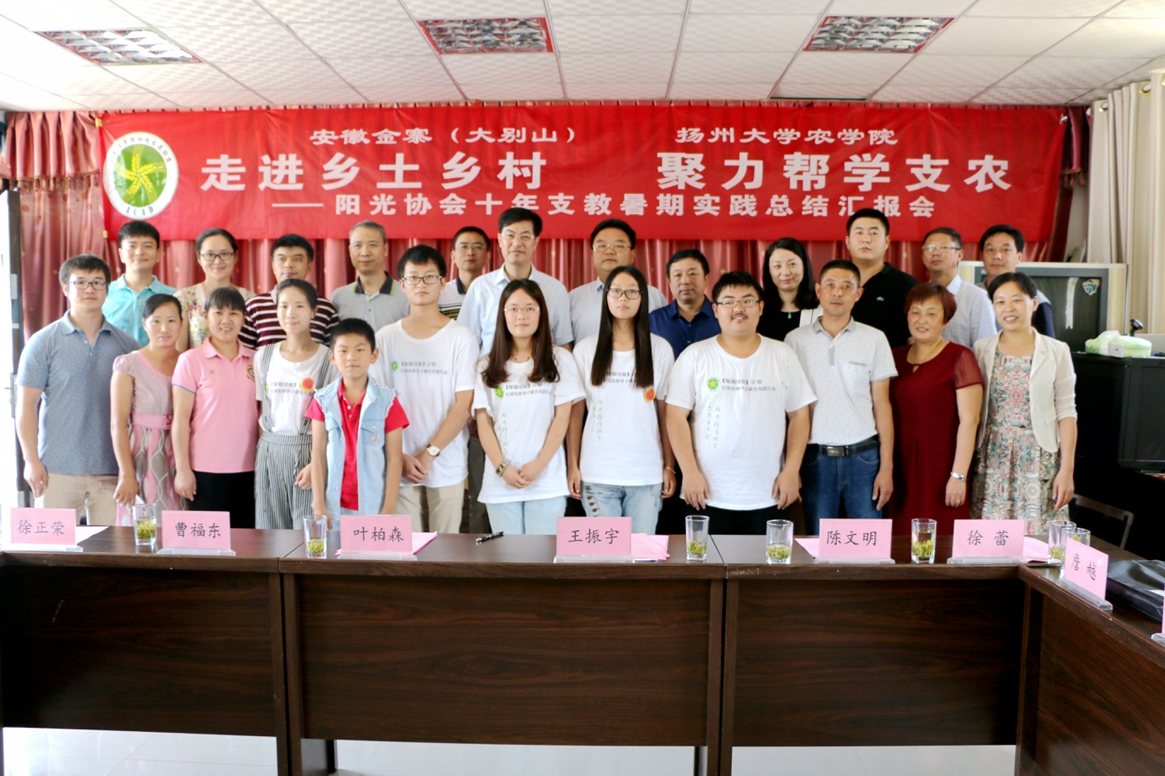 7月23日,校党委副书记、副校长叶柏森老师、校团委书记徐蕾老师、我院党委副书记沙爱红老师及院团委全体辅导员老师,携手扬州本土爱心企业恒通集团,满载教学物资、运动器材和爱心捐款,驱车共赴安徽大别山山区——金寨县油坊店乡龚冲村、元冲村,关爱当地留守儿童、慰问我院阳光协会支教团员。