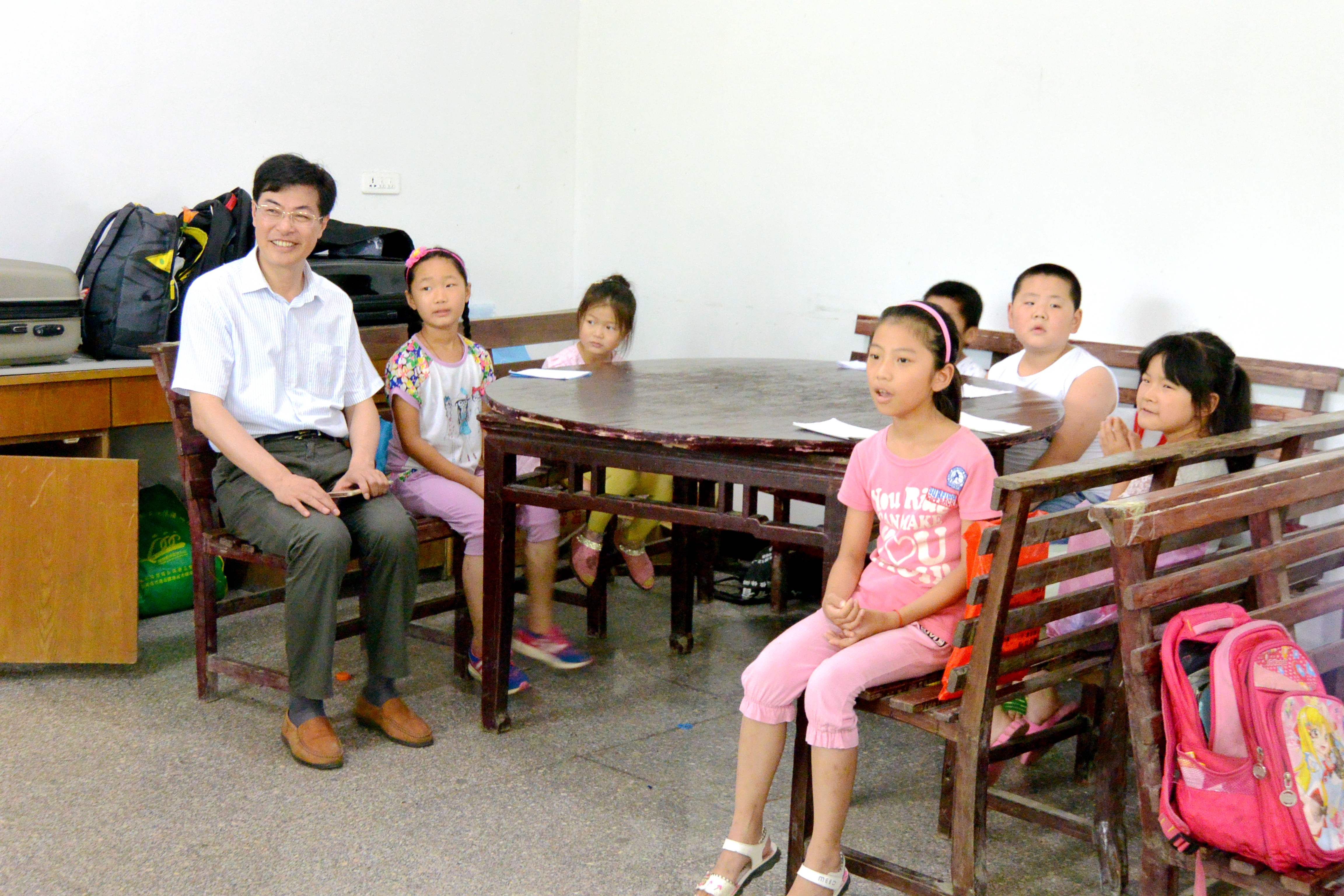 观摩活动结束后,叶书记还专门来到支教队员中间询问关心大家的生活情况,叮嘱同学们保护好孩子和自身安全。他称赞阳光协会是一群充满阳光的学生自发凝聚而成,又四处散播阳光的组织,在校内外享有较高的声誉,展示了我校学子的良好形象。他还强调,今年是阳光协会支教大别山地区的第十一个年头,也是第二个十年的开始之年,学校、学院一定联合各方力量为支教活动提供保障,希望支教队员常怀‘爱心’‘虚心’‘恒心’之‘初心’,继续前行,将公益之路走的更远、更实、更坚定。