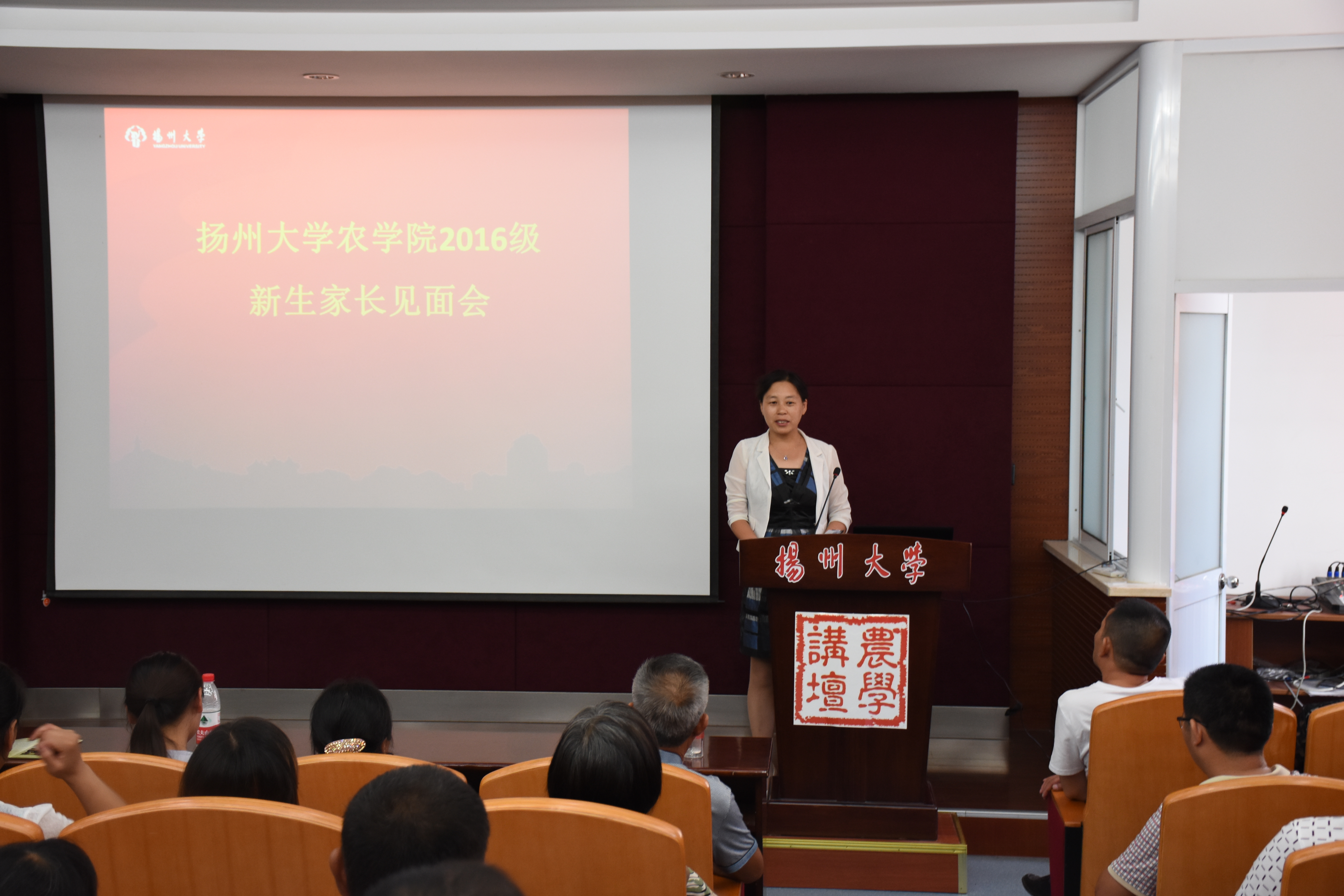 下午1点半,学院在N127报告厅举行了新生家长见面会。家长们全方位的了解了我院的历史、师资、教学、科研、学科发展等方面的情况,从而对孩子在我院的学习发展更加充满信心。沙爱红副书记更希望家长们加强与学院的联系,在充分了解学生的学习状态的基础上,与学校合力实现学生的成人成才。