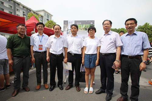在迎新现场校院领导与陈天星父女合影