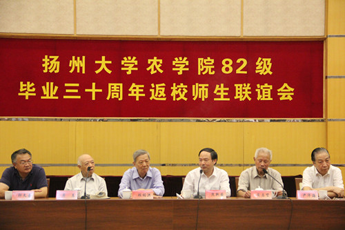 9月24日,扬州大学农学86届近100位校友在学校多功能厅举行了30周年返校活动,扬州大学校长焦新安、原扬州大学校长顾铭洪、农学院党委书记郭文善等领导、老师应邀出席本次校友师生座谈会,并与校友们合影留念。