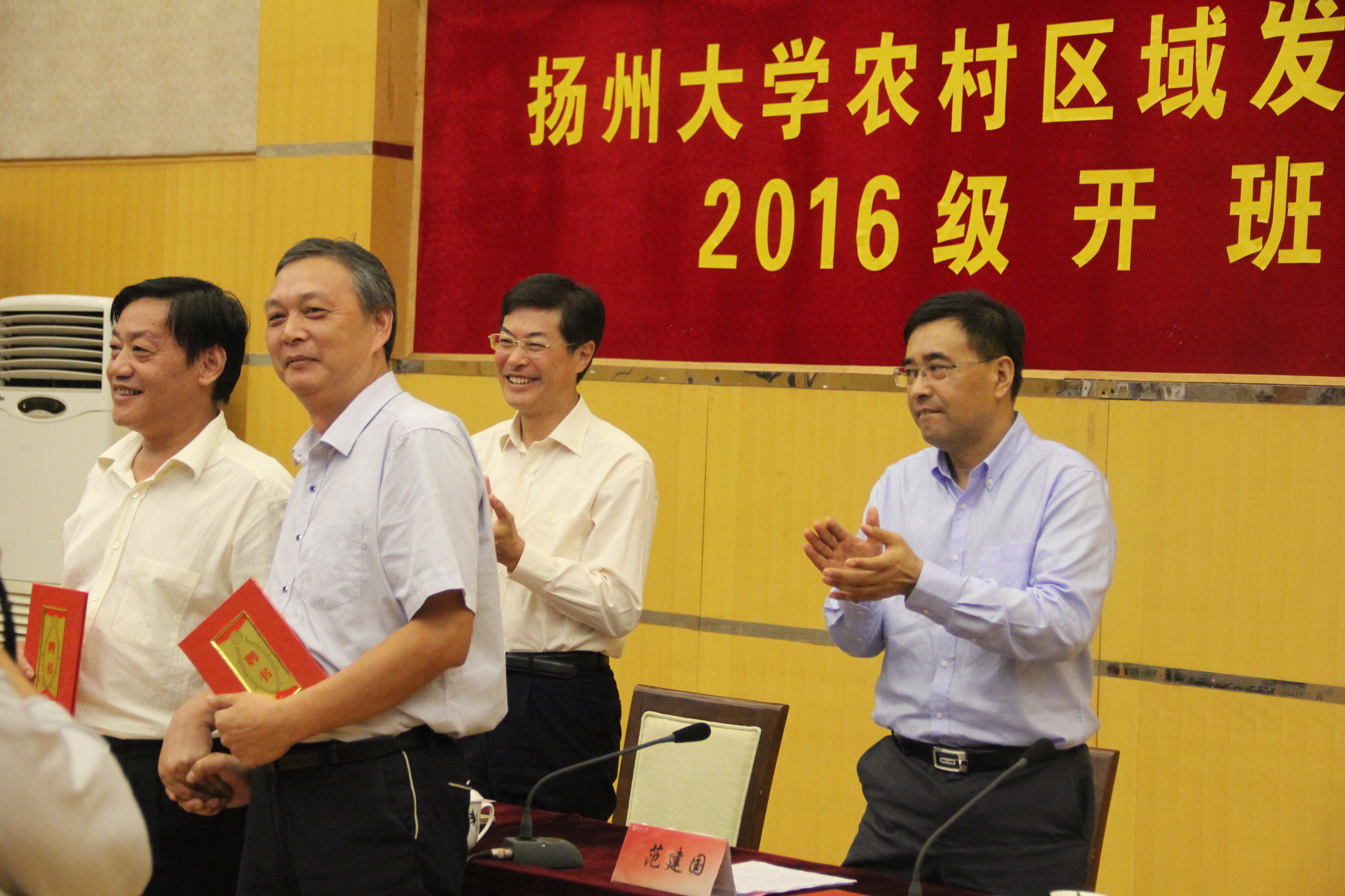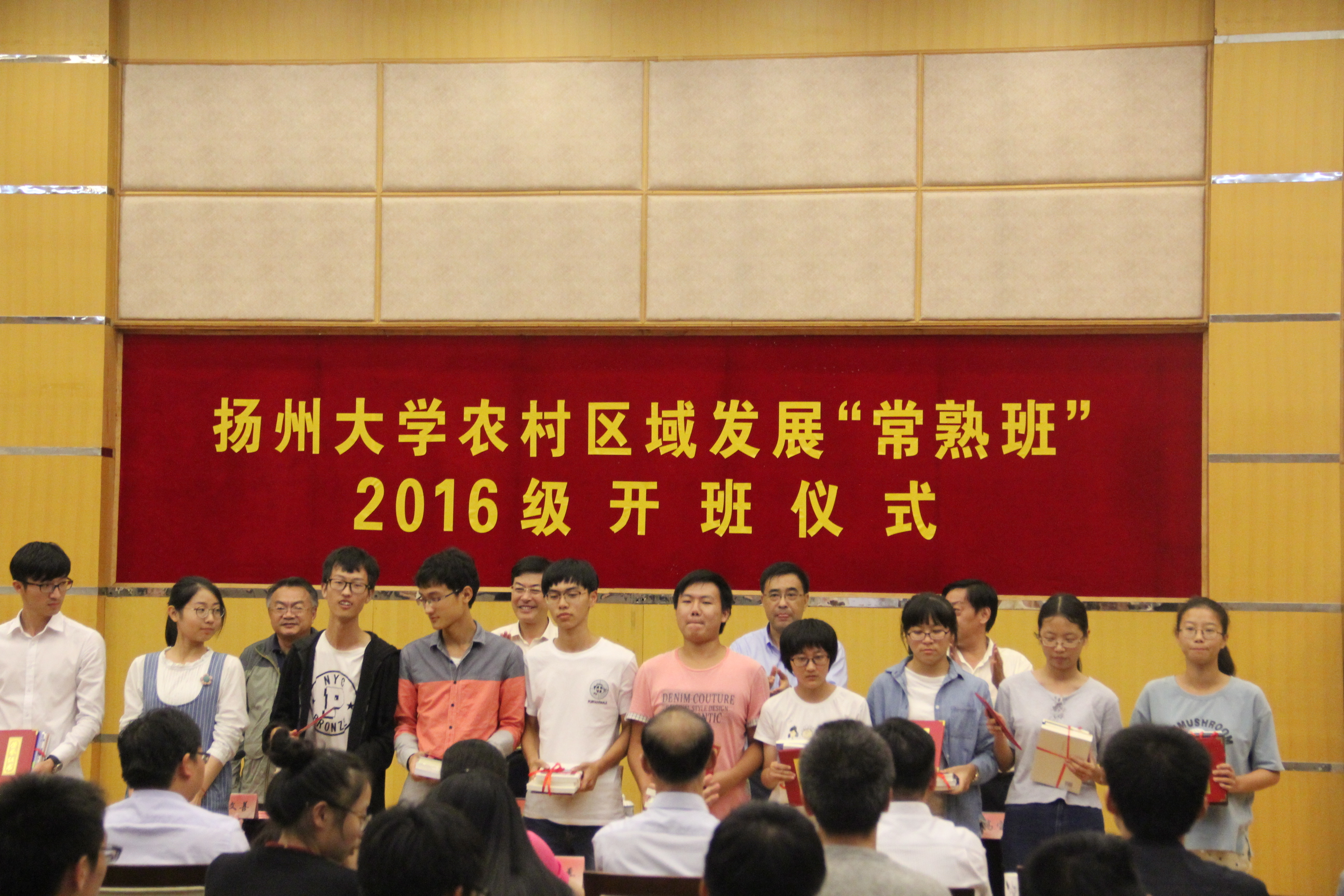 9月28日,扬州大学农学院农村区域发展“常熟班”2016级开班仪式在荷花池校区主楼多功能厅隆重举行。校党委副书记、副校长叶柏森,常熟市政府副市长范建国出席仪式,常熟市农委、组织部、教育局等部门负责人,我校团委、教务处、学生处等主要负责同志参加了开班仪式,开班仪式由院党委郭文善书记主持。