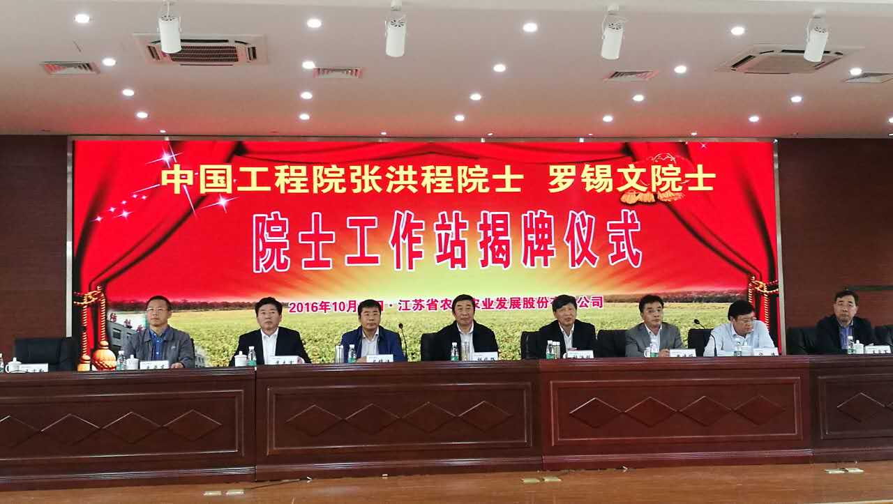 会议期间,与会代表共同观摩考察了我院设在苏垦农发东辛分公司、黄海分公司的水稻钵苗机插(超)高产示范现场,参观了黄海分公司农机服务总站的现代化农业机械装备。在黄海分公司会场,吕修涛处长、胡兆辉总经理、黄建晔副校长、苏志富总裁、许峰副总裁、黄海分公司王亦勤总经理共同为张洪程院士工作站、罗锡文院士工作站揭牌。