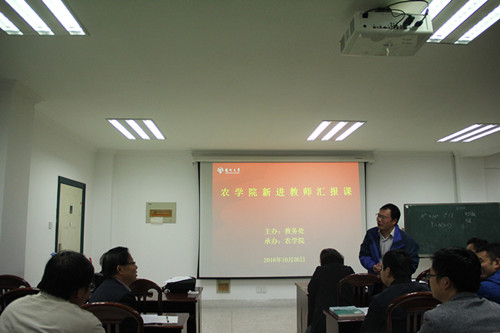 根据学校教务处统一部署,我院于10月26日下午在农牧楼N627举办了新教师汇报课活动。校教务处副处长俞福丽,副院长陈源副教授,特邀专家生技学院金银根教授,院督导黄祖六教授,学院40周岁以下青年教师出席活动。副院长陈源副教授主持了本次活动。