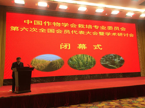 在闭幕式环节,第六届栽培专业委员会副主任委员、中国农科院赵明教授宣读了栽培专业委员会突出贡献者名单,第六届栽培专业委员会副主任委员兼秘书长戴其根教授宣读了第六届栽培专业委员会荣誉主任、名誉主任与顾问聘任文件,第六届栽培专业委员会主任委员张洪程院士作了会议总结。