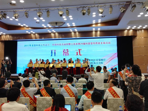 2017年5月25日下午,为隆重庆祝首个“全国科技工作者日”,由省委宣传部、省科协、省科技厅、省人社厅、省国资委、中科院南京分院共同举办,以“投身创新争先,融入‘两聚一高’”为主题的2017年全国科技工作者日、全国科技活动周暨江苏省第29届科普宣传周主场活动在南京举行。活动开幕式上举行了首届江苏省创新争先奖表彰大会,表彰奖励了10个省“创新争先奖”团队等。我院张洪程院士领衔的“水稻优质高效机械化精确化生产技术创新团队”荣获创新争先奖,以奖励该团队在科技领域做出的突出成绩。