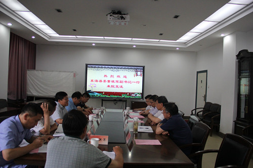 6月20日下午,东海县委副书记董桂军、东海县农委主任马广良一行6人来院交流,张洪程院士、院党委书记郭文善、院长刘巧泉、副院长陈源、高辉参加了交流。本次交流的主要议题是深化院地共建合作,探讨建设院士东海工作站,会商优质稻麦产业协同创新事宜。